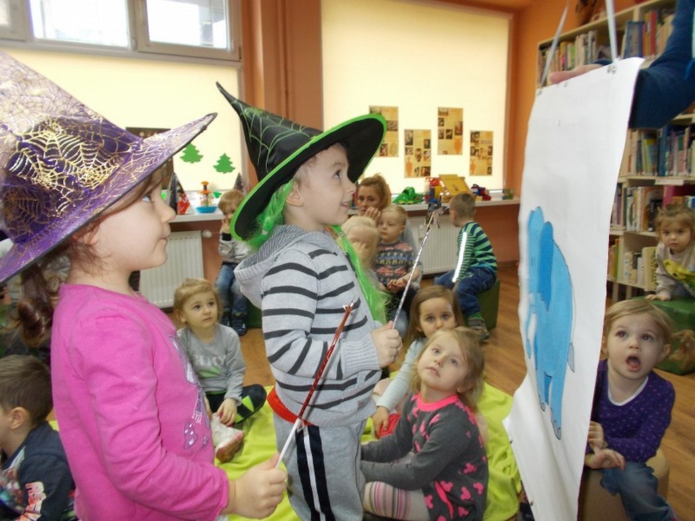 Maluchy, 3-latki z Przedszkola Happy-Days po raz kolejny w naszej bibliotece. Tym razem „Biedronki" poznały magiczne słowa i za pomocą różdżki oraz magicznego zaklęcia czarowały dziewczynkę Halinkę i szarego słonia. Zabawom nie byłoby końca, gdyby nie czas powrotu do przedszkola. Do zobaczenia na kolejnym spotkaniu.