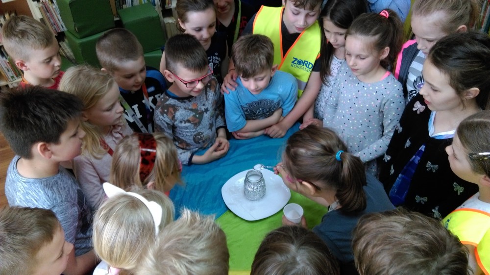 Z pierwszą wizytą do biblioteki zawitała klasa II „A” ze szkoły Podstawowej nr 1. Uczniowie zapoznali się z pracą bibliotekarza (jak stwierdzili trudną pracą), naszym księgozbiorem i poszczególnymi działami oraz zasadami korzystania z biblioteki. Bibliotekarki zaprezentowały kilka ciekawych pozycji książkowych, pokazały dzieciom inną formę książki, poprzez Teatrzyk Kamishibai, a także przeprowadziły ciekawy eksperyment z dziećmi. Na zakończenie spotkania uczniowie otrzymali ordery biblioteczne.