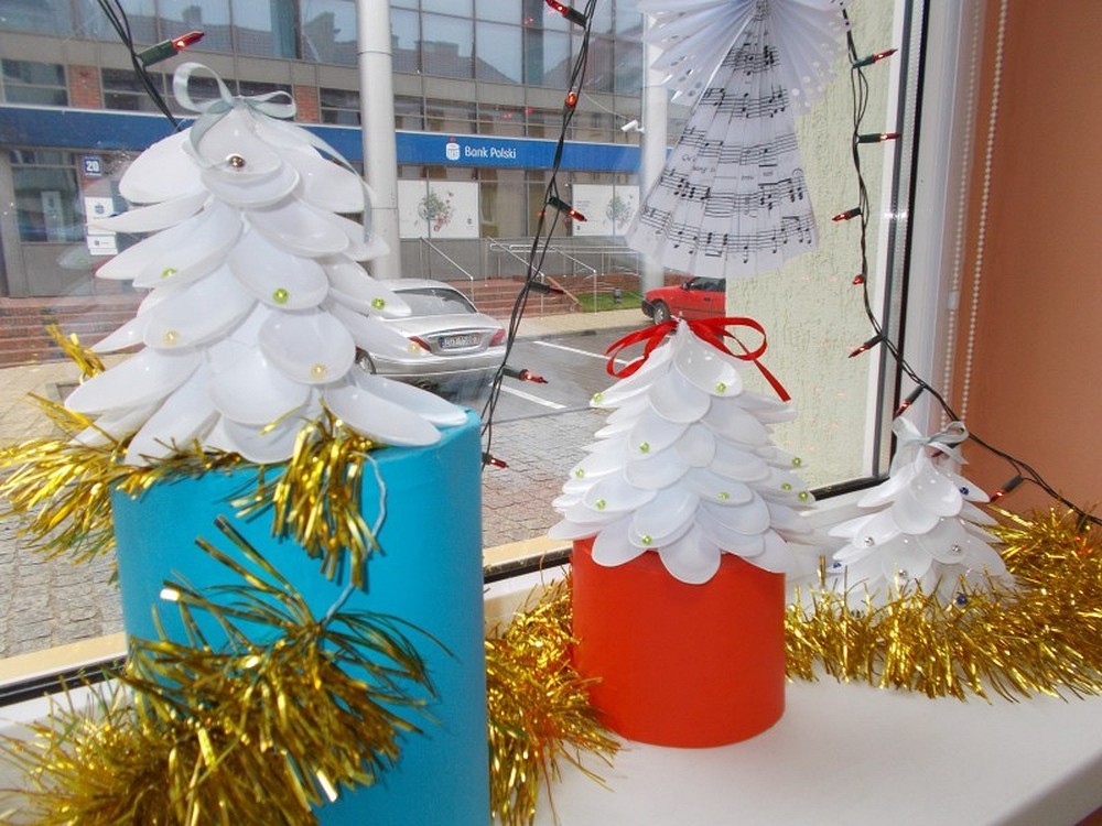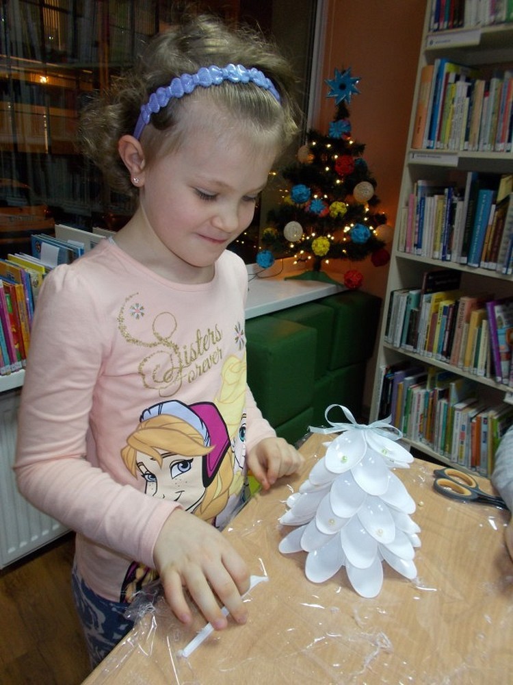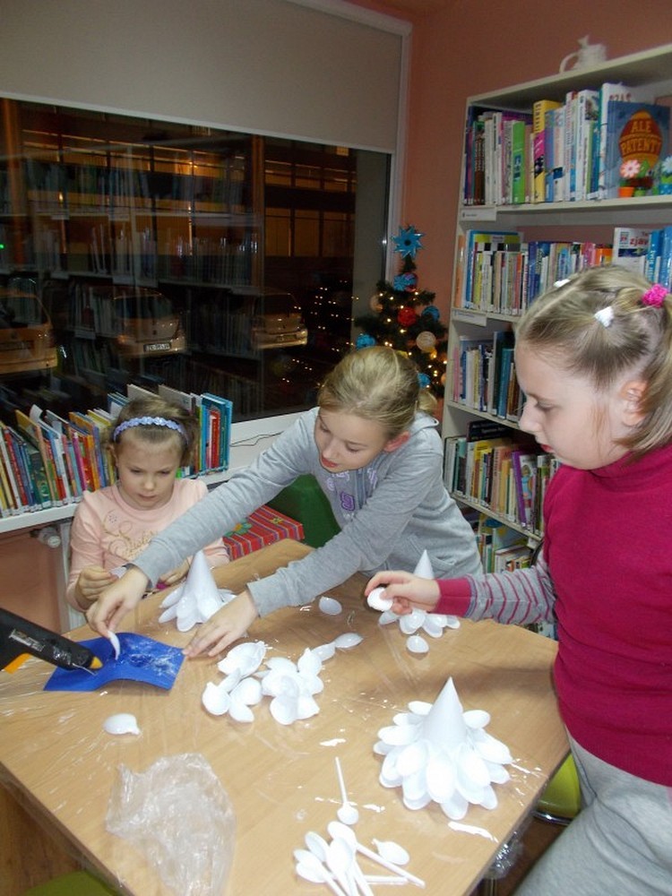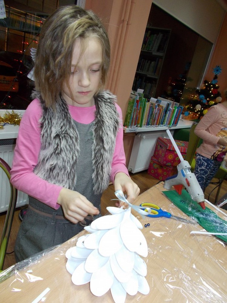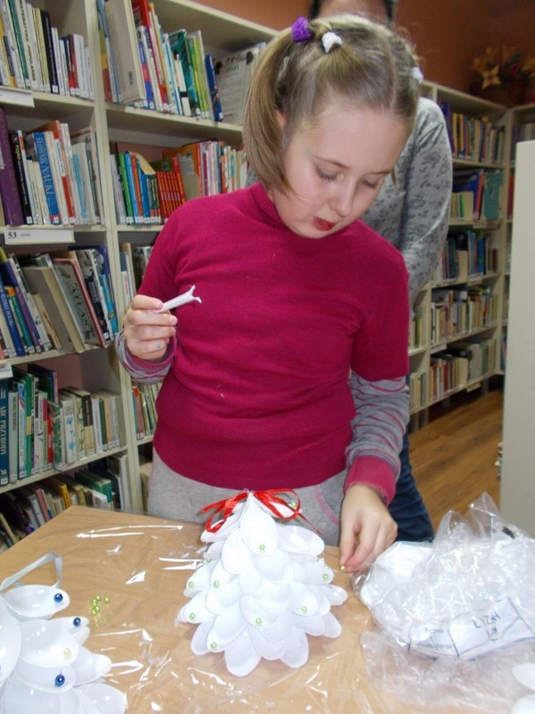 Przygotowania do świąt czas zacząć...Tym razem na spotkaniu czwartkowym skupiliśmy się na dekoracji świątecznej. Nasze dzieci wykonały własnoręcznie swoje ekologiczne choinki, które można obejrzeć na wystawie w bibliotece. A oto efekt naszej pracy....