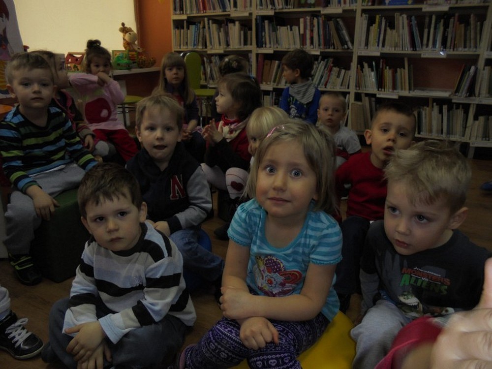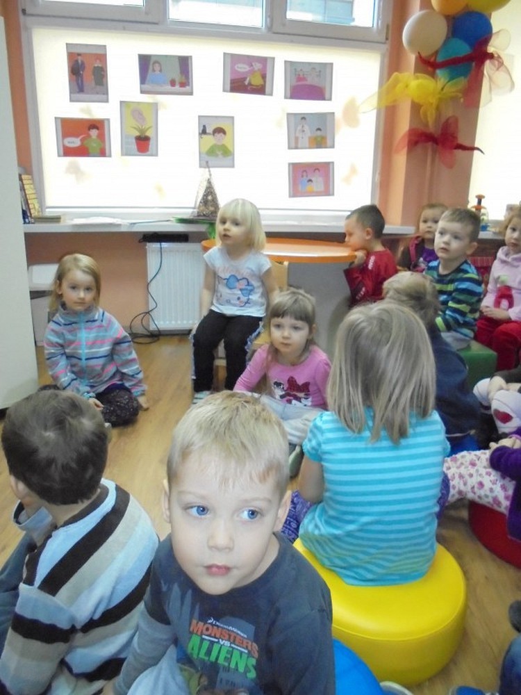 Dnia 16 kwietnia przybyły do nas sympatyczne 3-latki z Przedszkola nr 13. Maluchy bawiły się przy muzyce i książce Kasi Klich, poznały „magiczne wyrazy", dowiedziały się również, że grzecznym dzieciom mówić brzydko nie wypada.