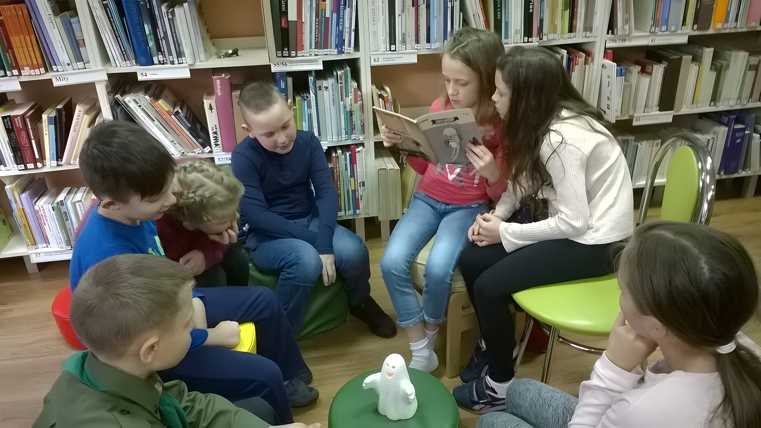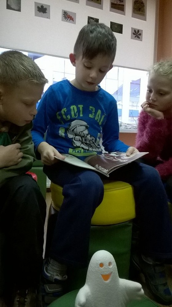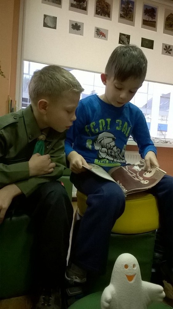Jesienna pora i zbliżające się Święta Wszystkich Świętych nastroiły nasze spotkanie na rozmowy o tradycjach obchodzonych w naszym, jak i innych krajach. W tym klimacie, przy nastrojowym duszku, dzieci wspólnie przeczytały jedno z opowiadań ze „Skrzynki Potworów". Spotkanie zakończyło się wesołą zabawą.