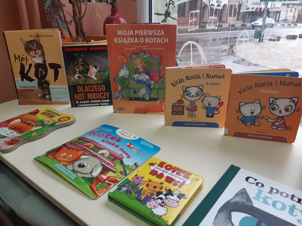 A w naszej bibliotece znajdziesz sporo książek o kotach, zachęcamy do wypożyczania książek z naszej wystawki!!!