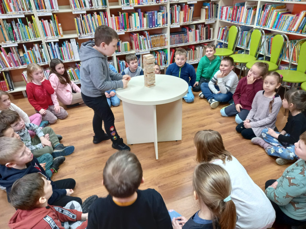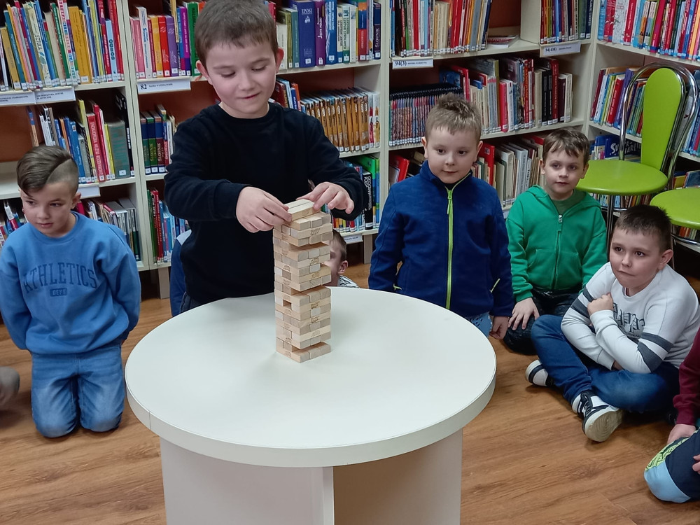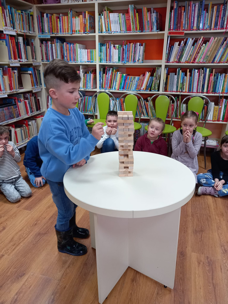 No nic jeszcze dopracujemy naszą miksturę, a po zapoznaniu się z książkami oferowanymi przez bibliotekę, zagraliśmy z przedszkolakami w grę Jengę, co tu się działo!