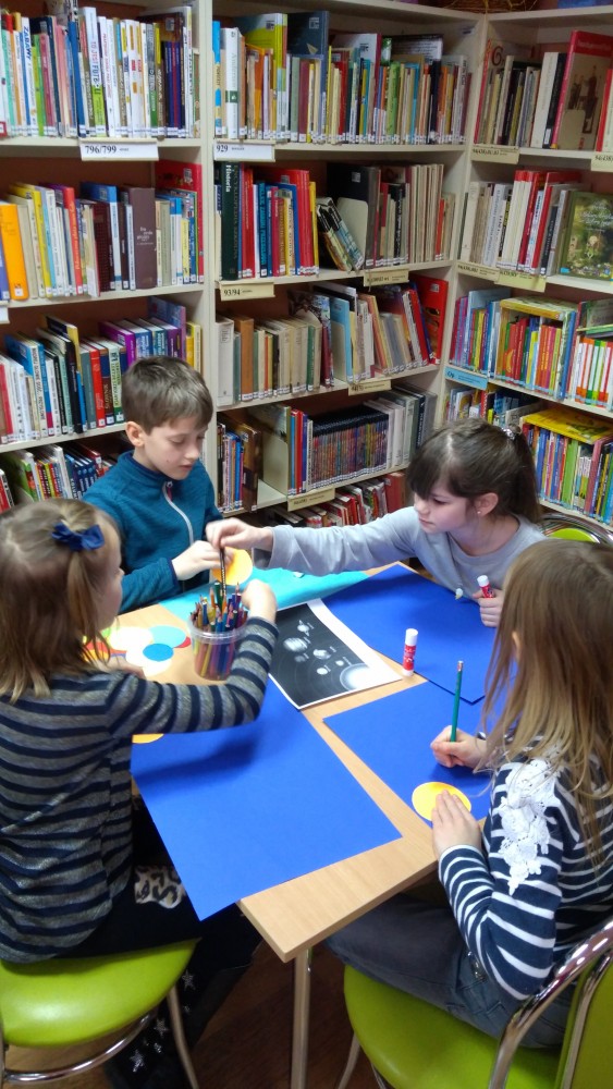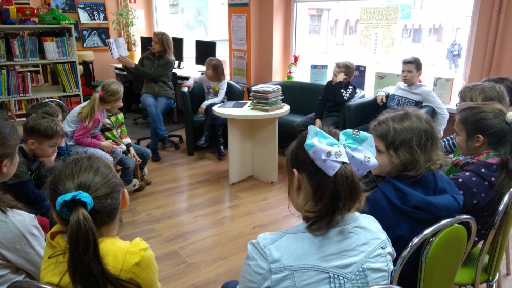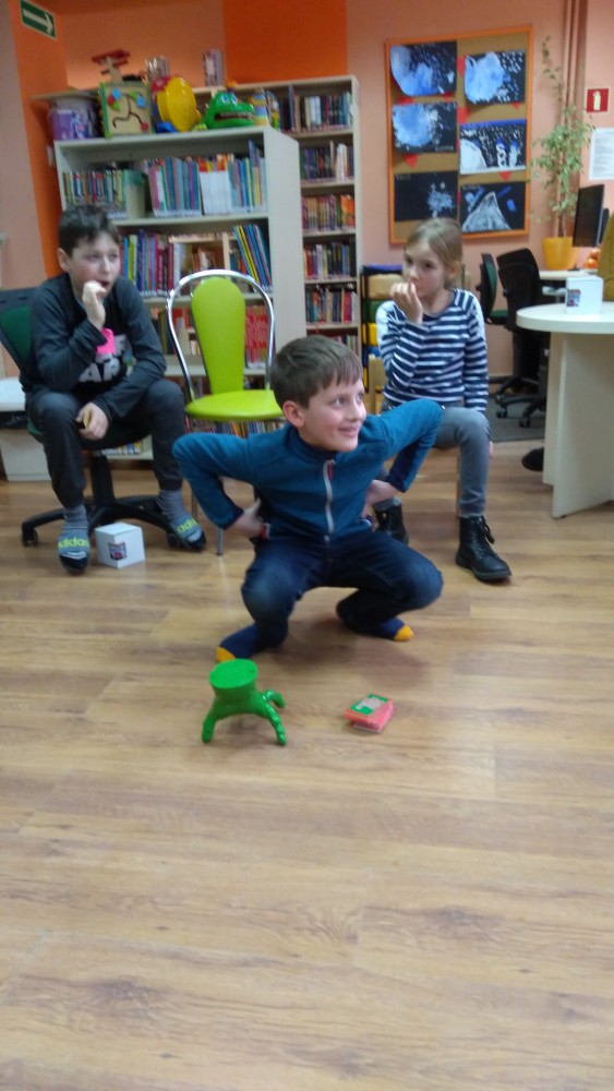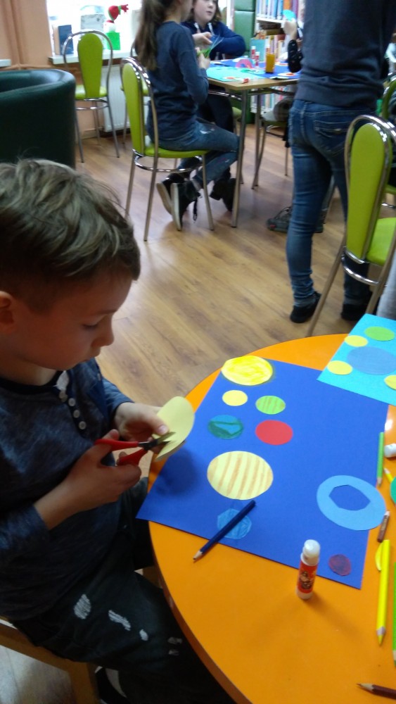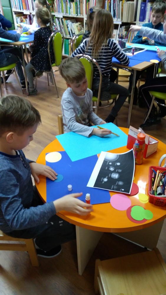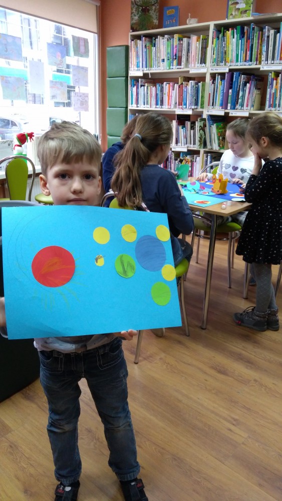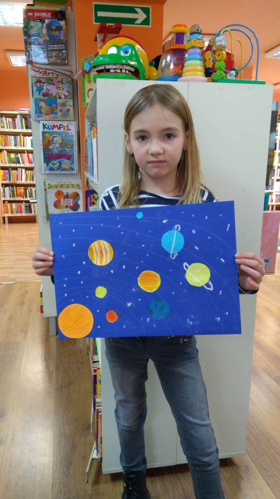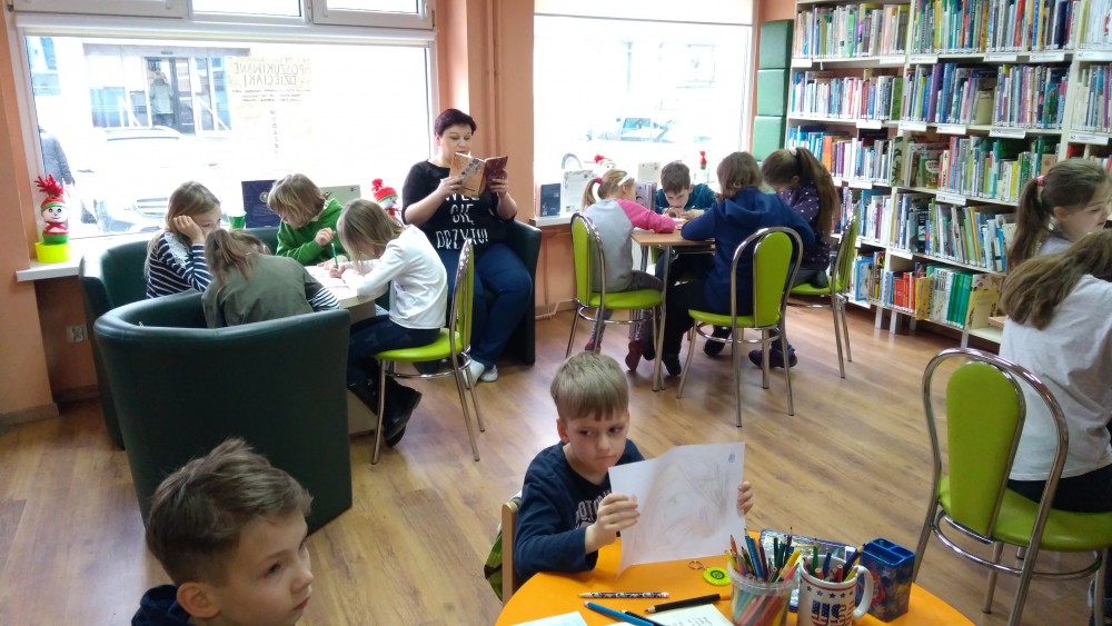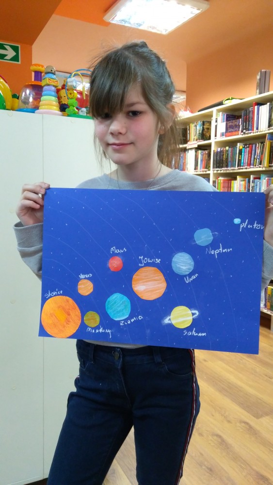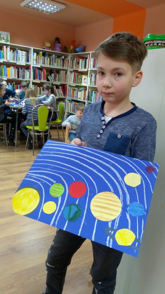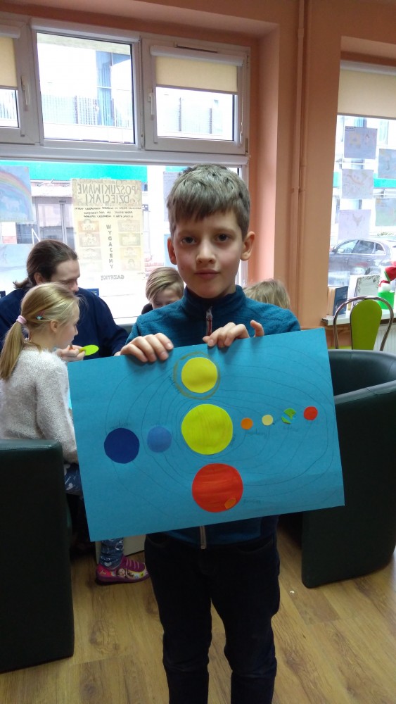 Ferie rozpoczęte...Ferie odbywają się pod hasłem: „Zimowy miszmasz w bibliotece” czyli już odbyło się spotkanie z panią policjantką Marią Czajkowską, która przeprowadziła pogadankę na temat bezpieczeństwa podczas spędzania czasu wolnego zimową porą.We wtorek odwiedziliśmy Budynek Główny i panią Anię Wieczorek z działu Informacji, która przeprowadziła ciekawą lekcję o "Pisarzach i ich pupilach" oraz wybraliśmy się w plener malarski zimową porą, gdzie wśród szumu drzew, gdakania kaczek miejskich wykonaliśmy zimowy pejzaż oraz nasze "Drzewo życzeń". Podczas ferii codziennie czytamy książkę Katherine Alice Applegate "Drzewo życzeń" oraz zapoznaliśmy się z twórczością Wandy Chotomskiej by zilustrować jej utwory na konkurs plastyczny. Kolejnego dnia wybraliśmy się do Yellow Park i dzieci mogły wykonać własne slimy. W czwartek obejrzeliśmy prezentację naukową o układzie słonecznym, a także wykonaliśmy własne układy słoneczne podczas zajęci plastycznych. Mieliśmy też okazję wybrać się na film do Budynku Głównego na "Magiczne drzewo- czerwone krzesło". Ostatniego dnia wybraliśmy się na wycieczkę do obserwatorium astronomicznego, co było dla naszych dzieci dużym przeżyciem i podsumowaniem zajęć o kosmosie. Mogliśmy obejrzeć przez lunetę słońce, które tego dnia było można zobaczyć w całej okazałości. Po wycieczce pan Piotr pokazał dzieciom fajna grę komputerową "Space Engine", dzięki której można chodzić nawet po księżycu i z bliska obejrzeć gwiazdy. Na zakończenie naszych zajęć dzieci otrzymały upominki w postaci kubka "Chodzę do biblioteki" wypełnione słodkościami. To był bardzo fajny czas i super dzieci, które chętnie wypożyczały książki, czytały je i przychodziły po kolejne, a także aktywnie uczestniczyły w zajęciach.