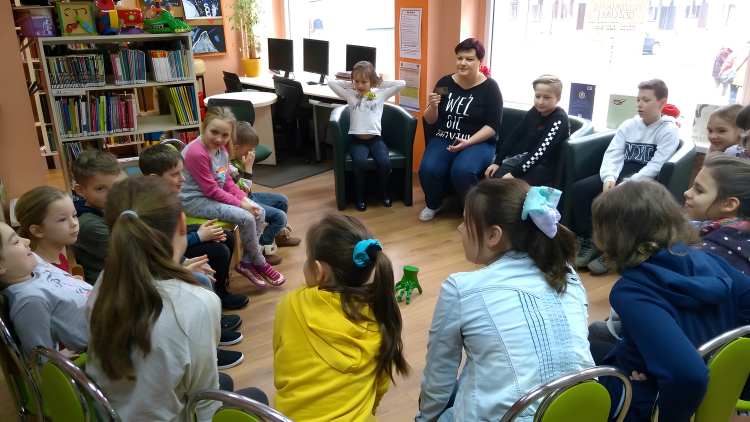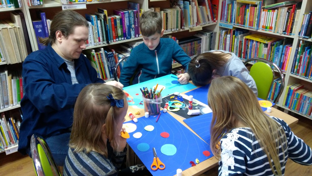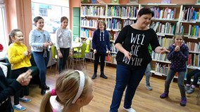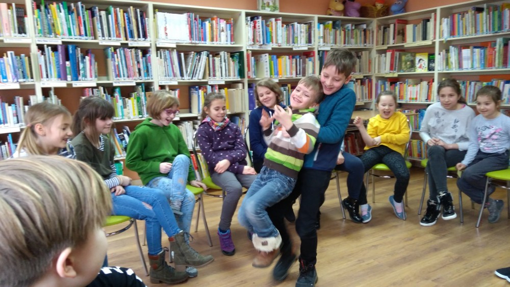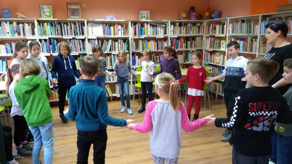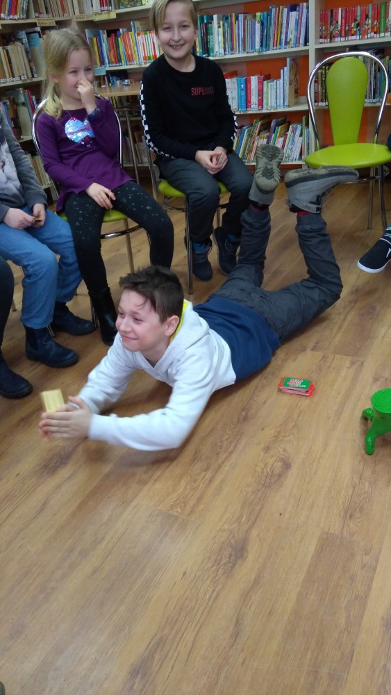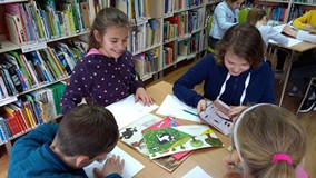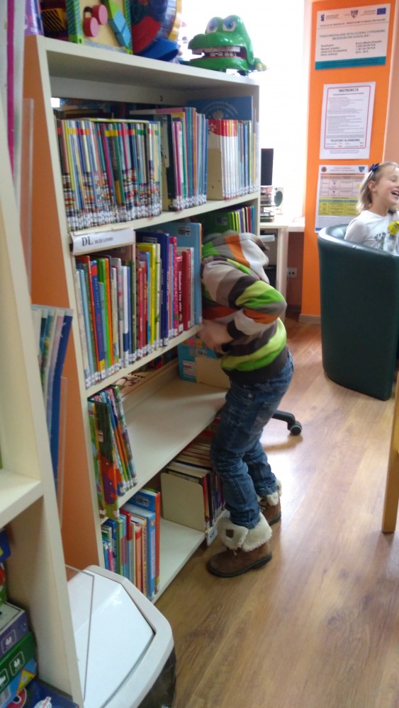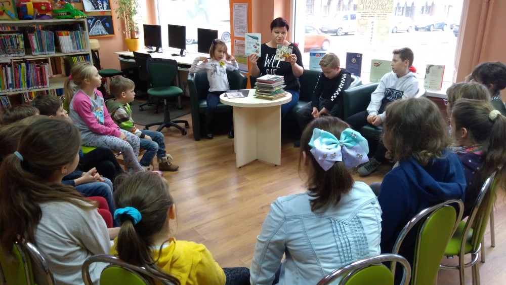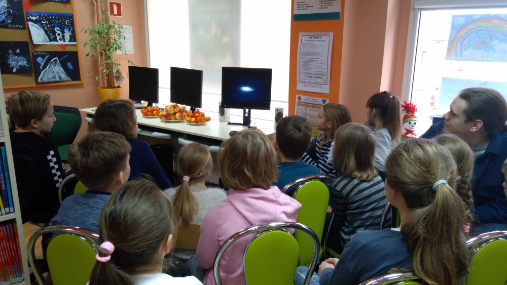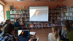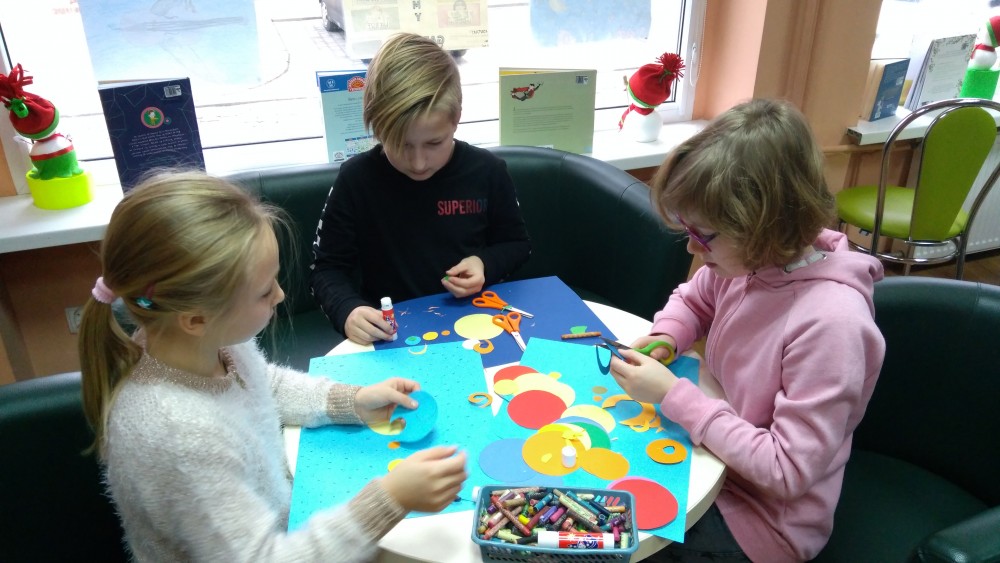 Ferie rozpoczęte...Ferie odbywają się pod hasłem: „Zimowy miszmasz w bibliotece” czyli już odbyło się spotkanie z panią policjantką Marią Czajkowską, która przeprowadziła pogadankę na temat bezpieczeństwa podczas spędzania czasu wolnego zimową porą.We wtorek odwiedziliśmy Budynek Główny i panią Anię Wieczorek z działu Informacji, która przeprowadziła ciekawą lekcję o "Pisarzach i ich pupilach" oraz wybraliśmy się w plener malarski zimową porą, gdzie wśród szumu drzew, gdakania kaczek miejskich wykonaliśmy zimowy pejzaż oraz nasze "Drzewo życzeń". Podczas ferii codziennie czytamy książkę Katherine Alice Applegate "Drzewo życzeń" oraz zapoznaliśmy się z twórczością Wandy Chotomskiej by zilustrować jej utwory na konkurs plastyczny. Kolejnego dnia wybraliśmy się do Yellow Park i dzieci mogły wykonać własne slimy. W czwartek obejrzeliśmy prezentację naukową o układzie słonecznym, a także wykonaliśmy własne układy słoneczne podczas zajęci plastycznych. Mieliśmy też okazję wybrać się na film do Budynku Głównego na "Magiczne drzewo- czerwone krzesło". Ostatniego dnia wybraliśmy się na wycieczkę do obserwatorium astronomicznego, co było dla naszych dzieci dużym przeżyciem i podsumowaniem zajęć o kosmosie. Mogliśmy obejrzeć przez lunetę słońce, które tego dnia było można zobaczyć w całej okazałości. Po wycieczce pan Piotr pokazał dzieciom fajna grę komputerową "Space Engine", dzięki której można chodzić nawet po księżycu i z bliska obejrzeć gwiazdy. Na zakończenie naszych zajęć dzieci otrzymały upominki w postaci kubka "Chodzę do biblioteki" wypełnione słodkościami. To był bardzo fajny czas i super dzieci, które chętnie wypożyczały książki, czytały je i przychodziły po kolejne, a także aktywnie uczestniczyły w zajęciach.