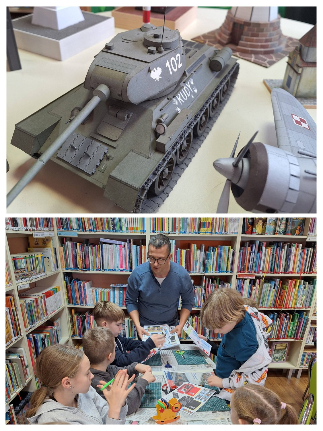 W dalszej części gościliśmy Pana Pawła Wilczka, który podzielił się z nami swoją pasją związaną z modelarstwem. Dzieci składały modele telefonów, samolotów, zegarów, a nawet i pociągów.