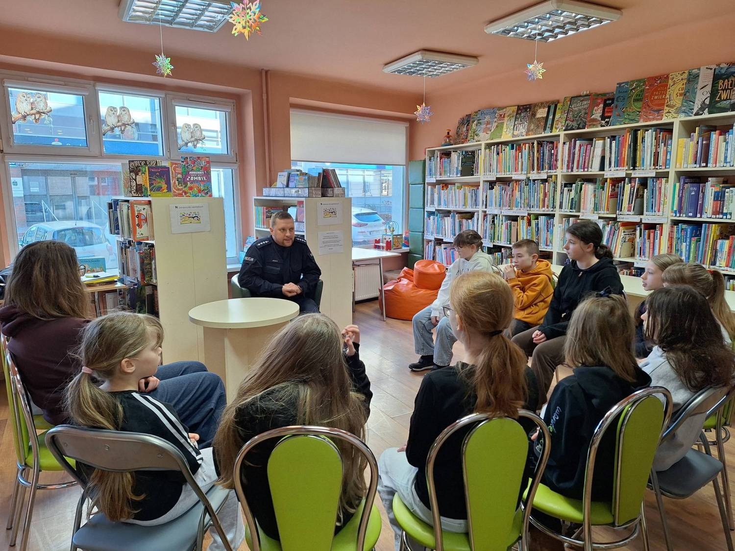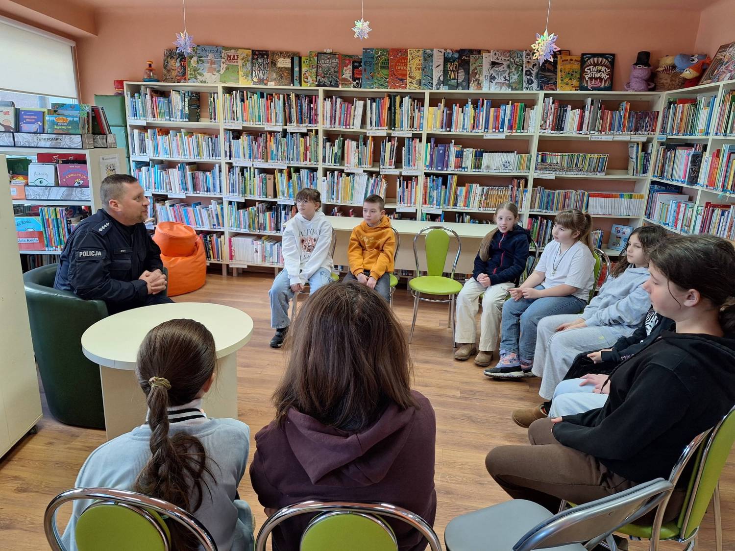 W międzyczasie odbyło się również spotkanie z policjantem Bartoszem Plota z Komendy Miejskiej Policji, który przeprowadził pogadankę z dziećmi o bezpiecznym spędzaniu czasu wolnego podczas ferii zimowych.