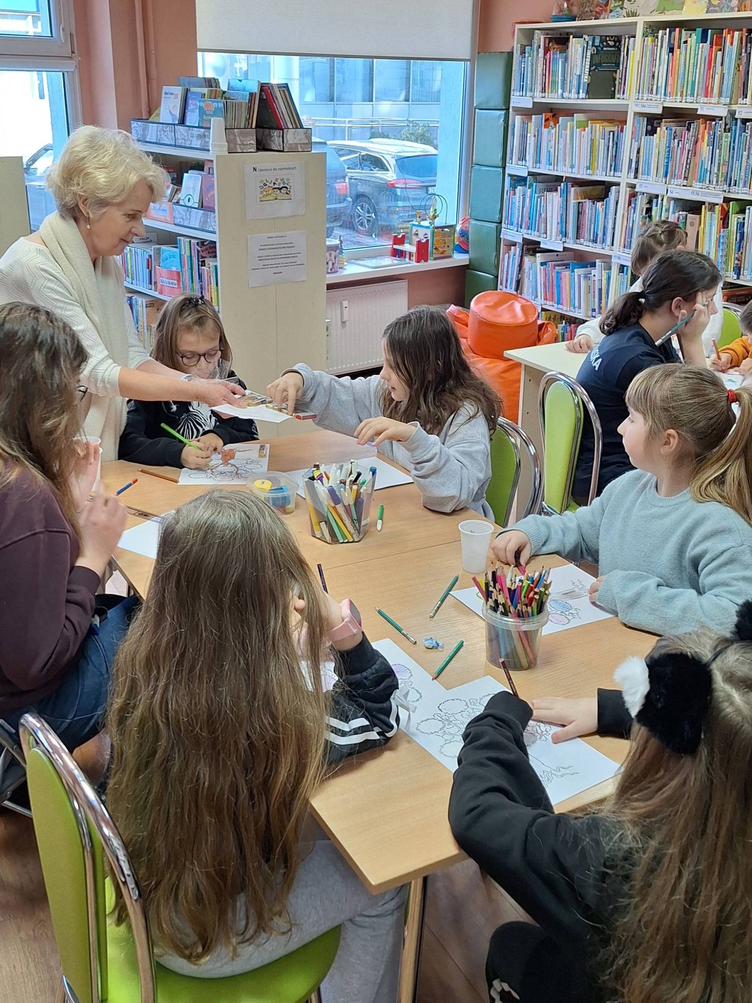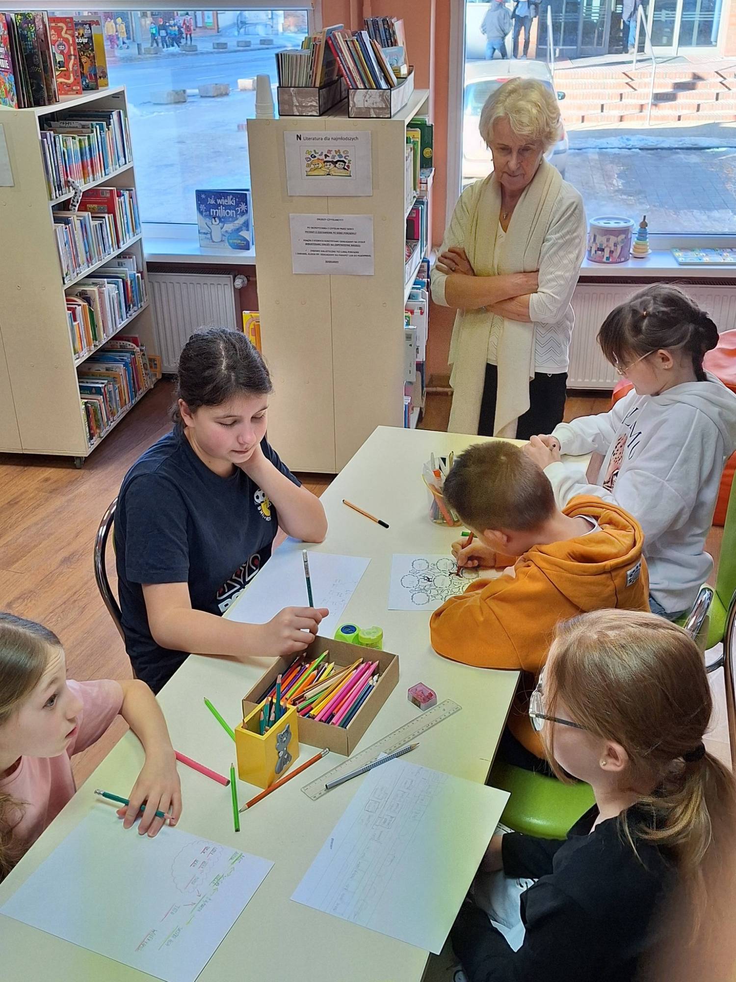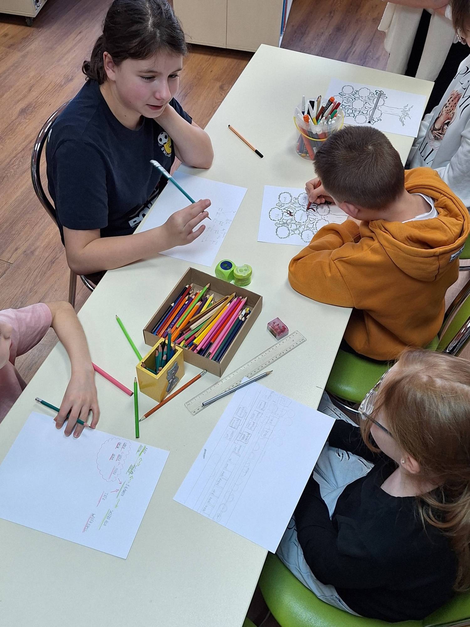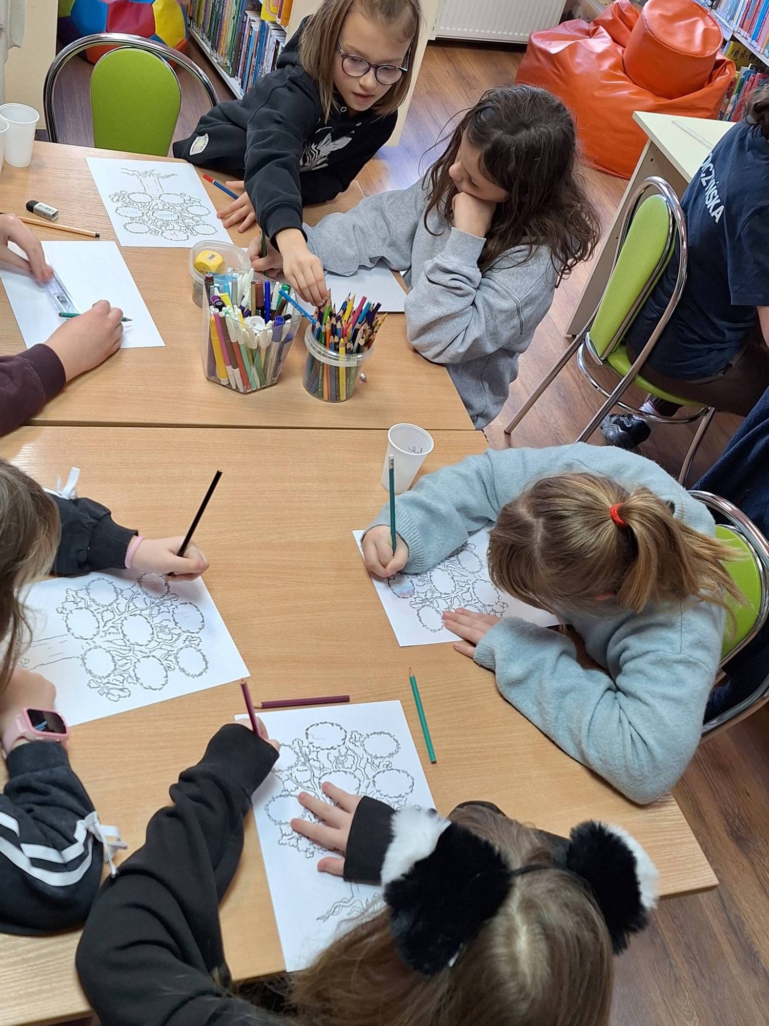 W nawiązaniu do tematu pani Lucyna opowiedziała dzieciom o tym jak dużo trzeba poświęcić czasu i cierpliwości, aby spisać dzieje swojej rodziny. Przybliżyła dzieciom historyjki, opowieści i informacje o swoim rodzie opisane w swojej książce. Nasi uczestnicy Bezpiecznych Ferii wykonali drzewa genealogiczne swoich rodzin.