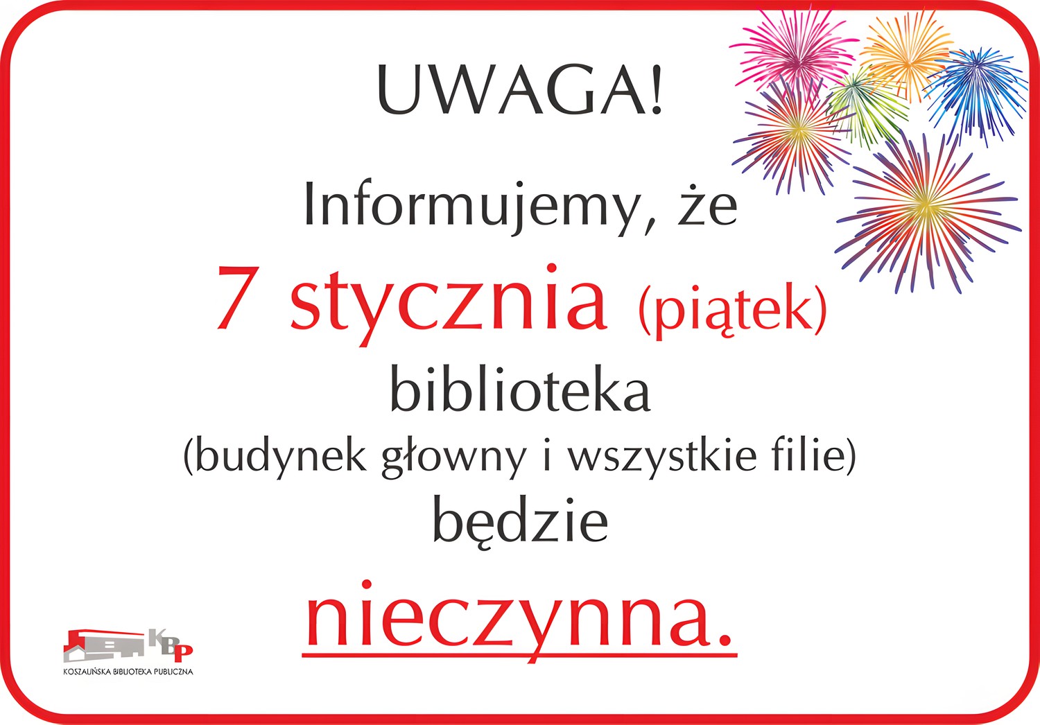 8.01.2022 r. (sobota) biblioteka czynna od 10.00-16.00 z przerwą na dezynfekcję 13.00-13.30. Zapraszamy!!!