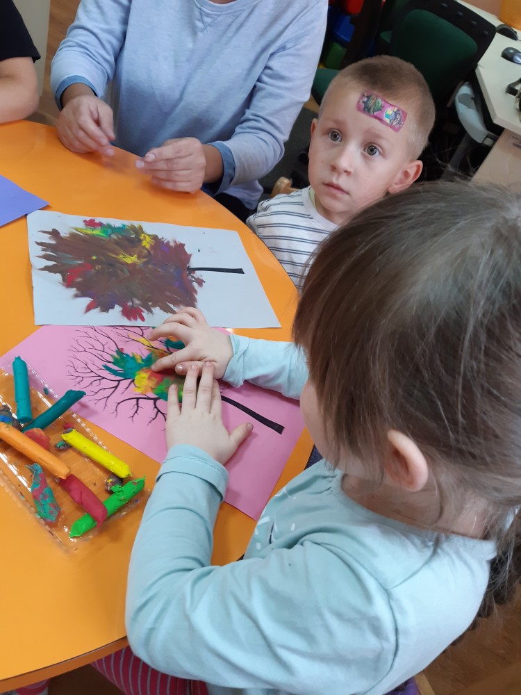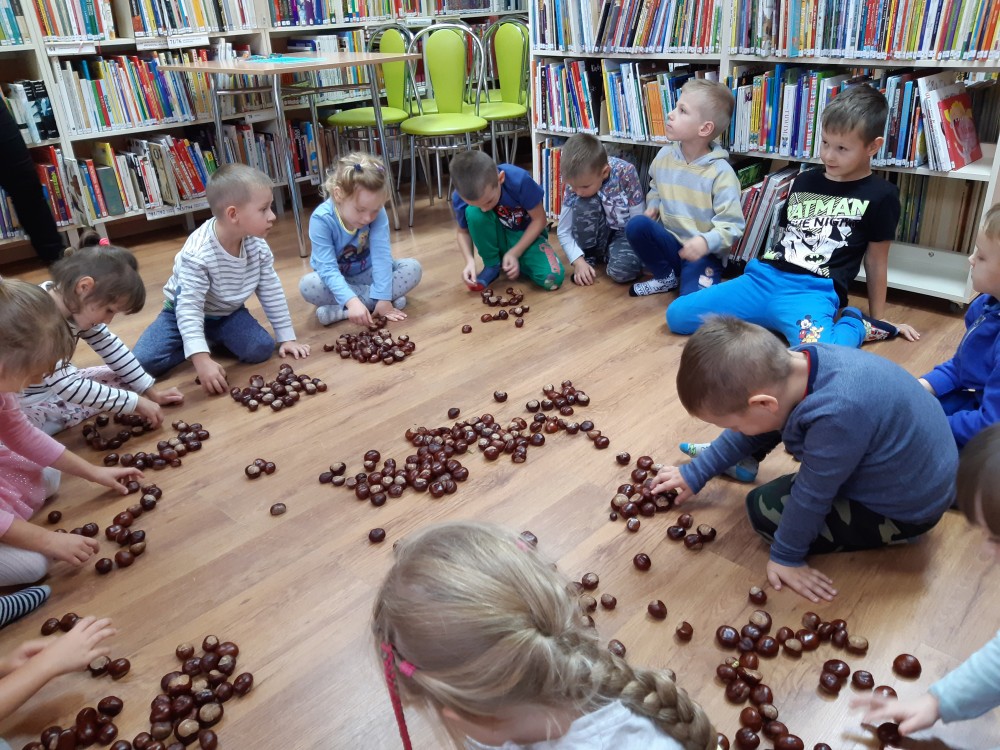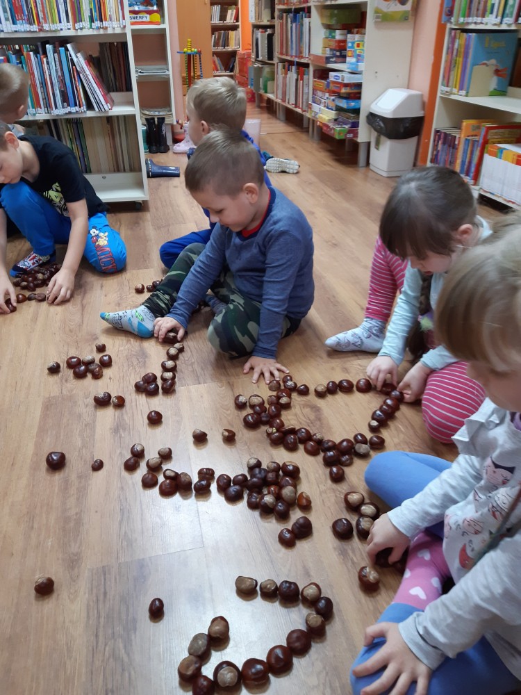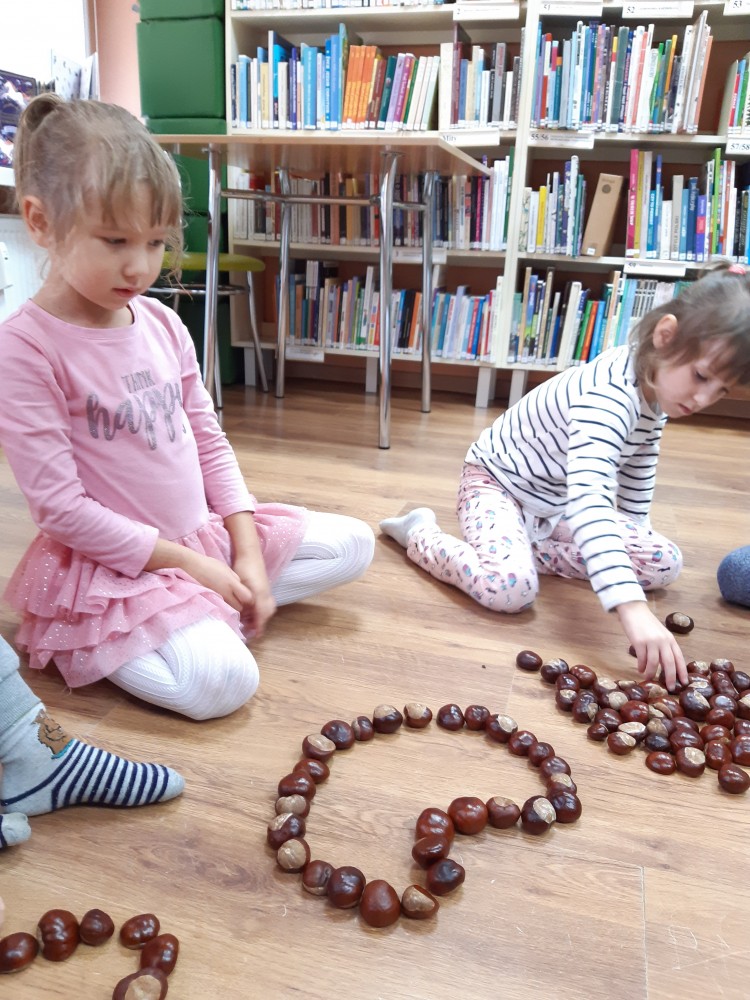 Jesienne spotkanie z przedszkolakami TPD - grupą Sówki. Czytaliśmy opowiadanie z książki Wojciecha Widłaka "Wesoły Ryjek i jesień" o liściach i ich jesiennych kolorach. No właśnie jaki naprawdę kolor mają liście? Na te pytanie dzieci odpowiedziały wykonując jesienne drzewa???? Podczas spotkania nie zabrakło zabaw z kasztanami, dzieci oglądały ich różnorodne kształty, a także układały serduszka i figury geometryczne na czas. Zobaczcie fotorelację ze spotkania!!!