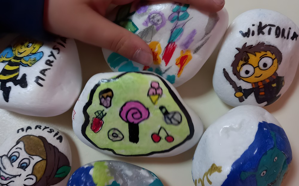 Po warsztatach dzieci rozłożyły swoje kamyczki w naszym koszalińskim parku oraz przy swoich ulubionych miejscach.