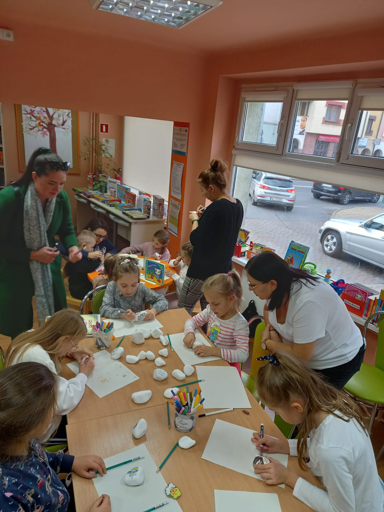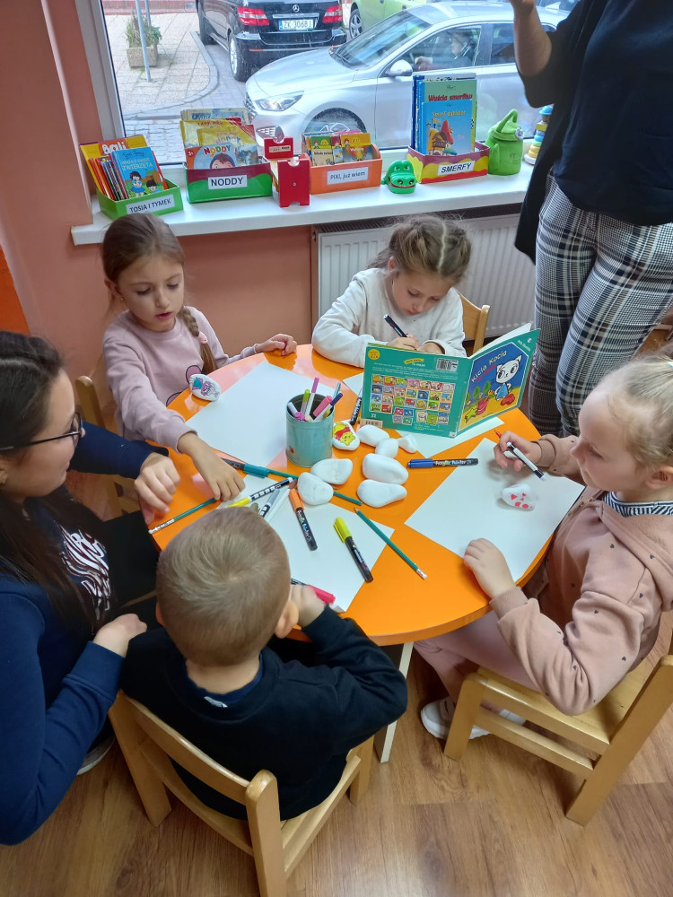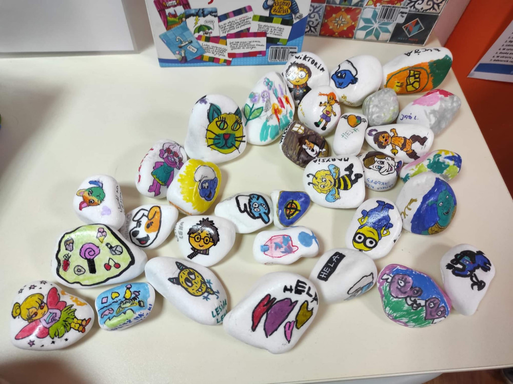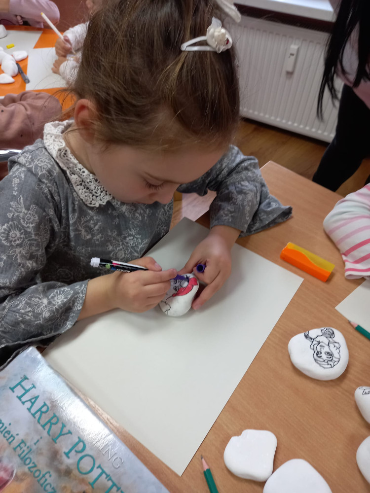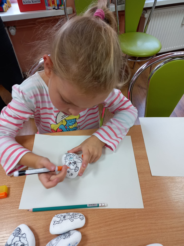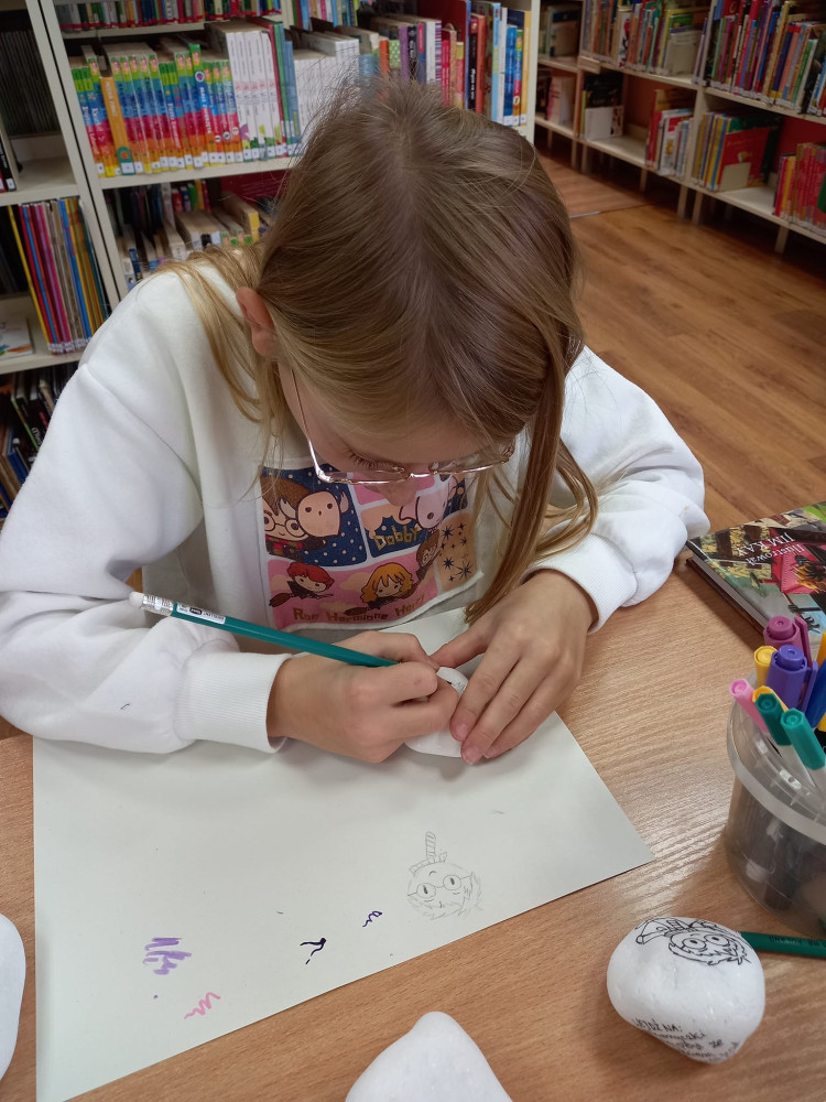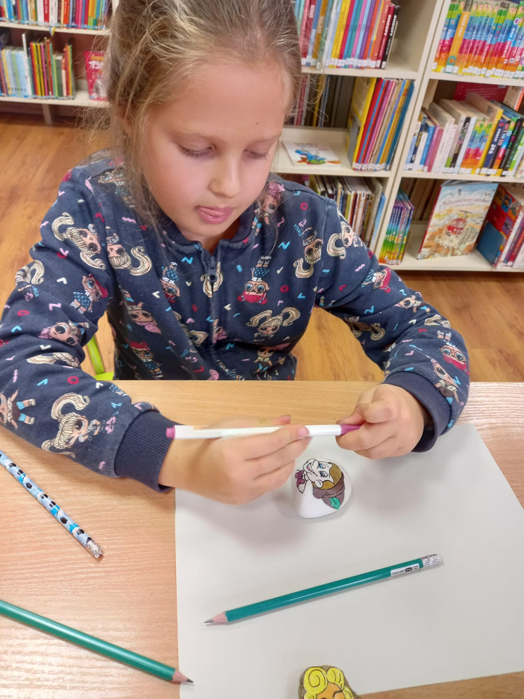 Zabawa w #kamyczki w naszej bibliotece trwa nadal i tym razem najmłodsi nasi czytelnicy malowali