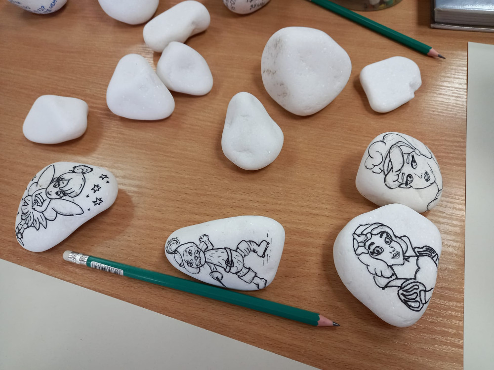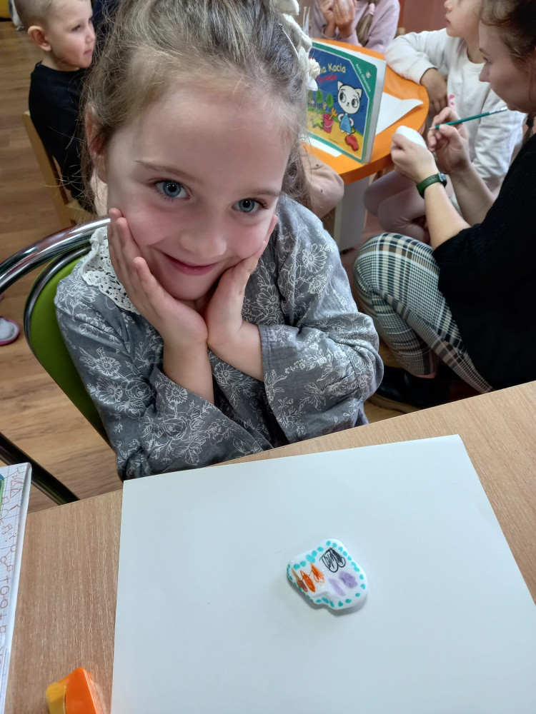 Warsztaty kamyczkowe spodobały się wszystkim dzieciom, nawet i dorosłym, którzy ukradkiem próbowali swoich sił