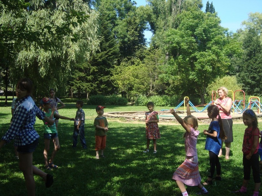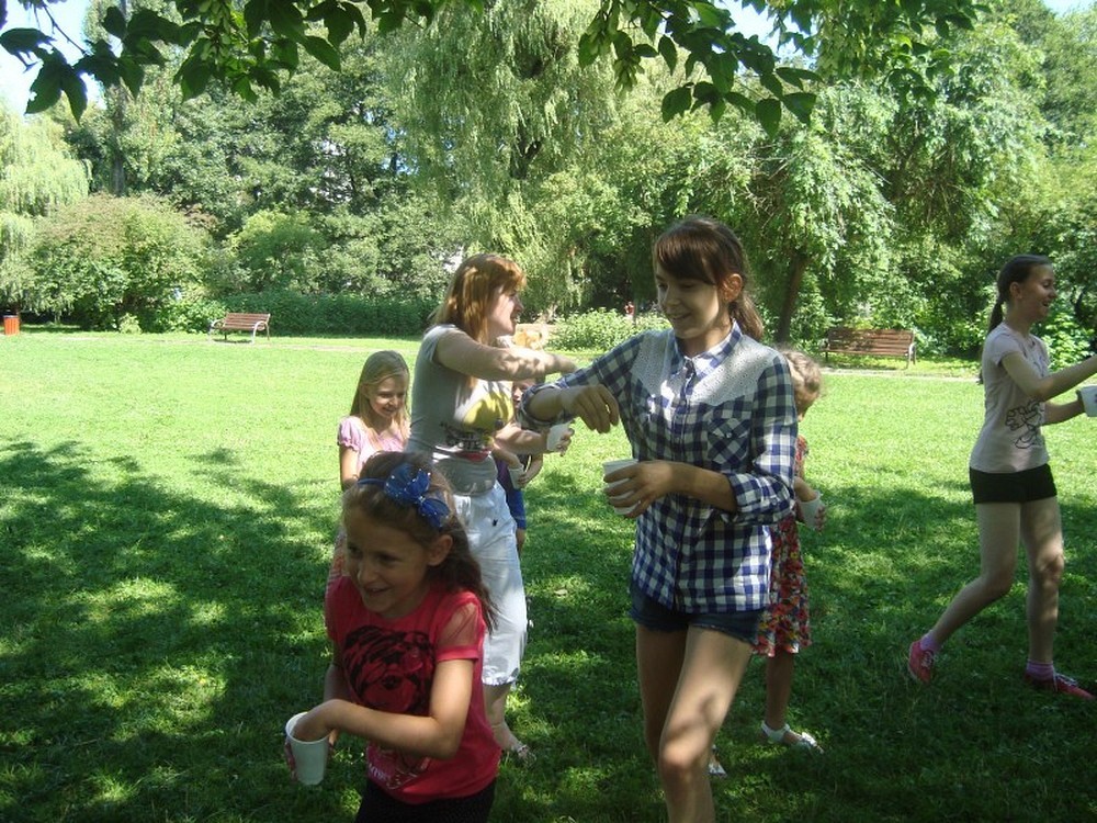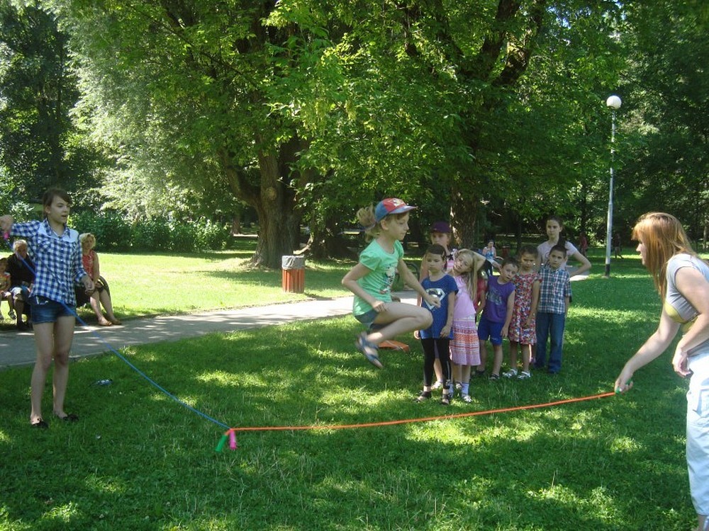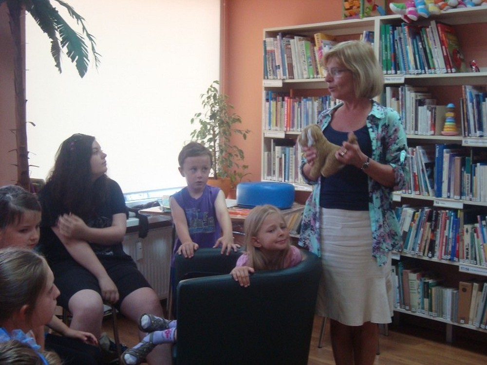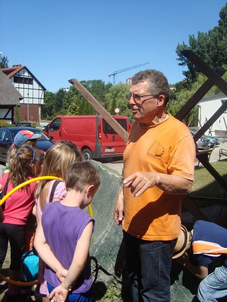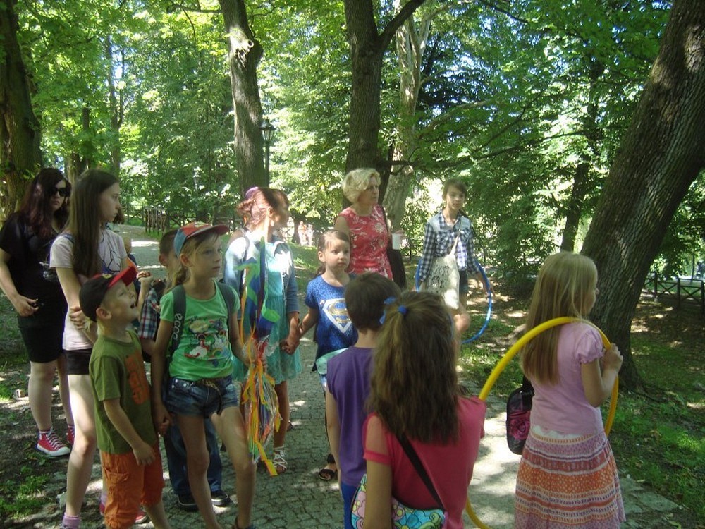 ...uświadomił nam to kolejny dzień naszej podróży wakacyjnej. Po raz kolejny pan Wojciech Broda-Żurawski odwiedził nas, by przekonać się czy jego mali aktorzy zrobili postępy. Dzieci i ich panie przyniosły swoje ulubione maskotki, by opowiedzieć ile znaczą dla nich ich pluszowi przyjaciele. W kolejnej części zajęć obejrzeliśmy prezentację o Koszalinie by z dumą stwierdzić, że nasze miasto jest najpiękniejsze. Poznaliśmy legendę Gracjana Bojara-Fijałkowskiego „O zbójcach z Góry Chełmskiej". Z radością więc poszliśmy śladem uroków koszalińskich widoków, by na żywo podziwiać historię Koszalina. Po drodze spotkaliśmy miłośnika naszego regionu, pana Lecha Fabiańczyka, który opowiedział nam ciekawostki o muzeum koszalińskim. Idąc zaś parkiem poznaliśmy gatunki drzew chronione prawem. Po zaspokojeniu dziecięcej ciekawości postanowiliśmy wspólnie się bawić, grając w zbijaka, piłkę siatkową i skacząc na skakance. Na koniec dla zabawy polewaliśmy się wodą z kubeczków i w bardzo dobrych nastrojach wróciliśmy do biblioteki, gdzie na dzieci czekali już rodzice.