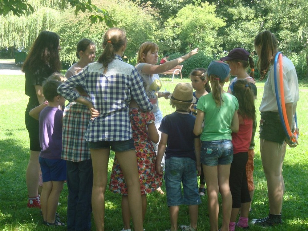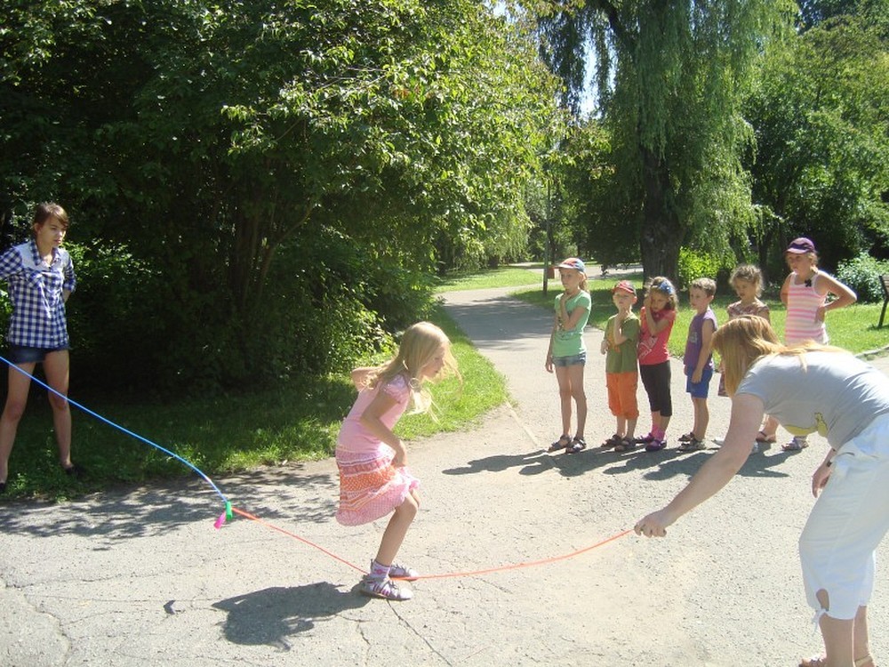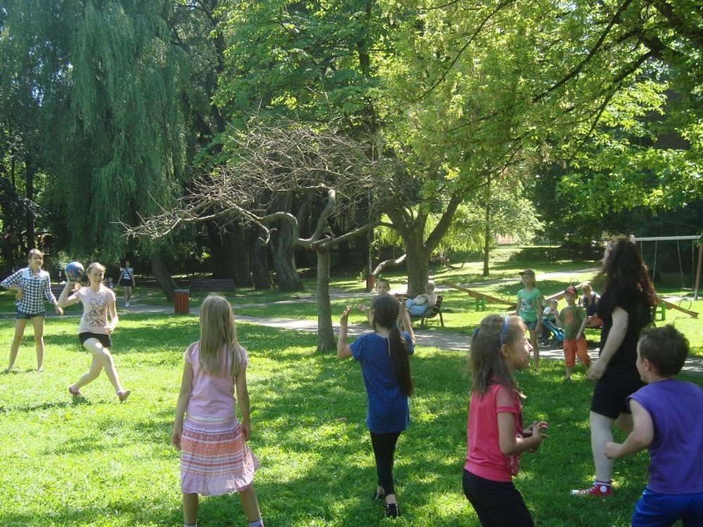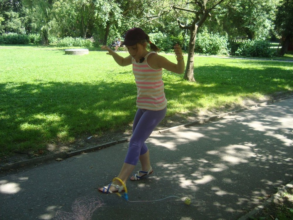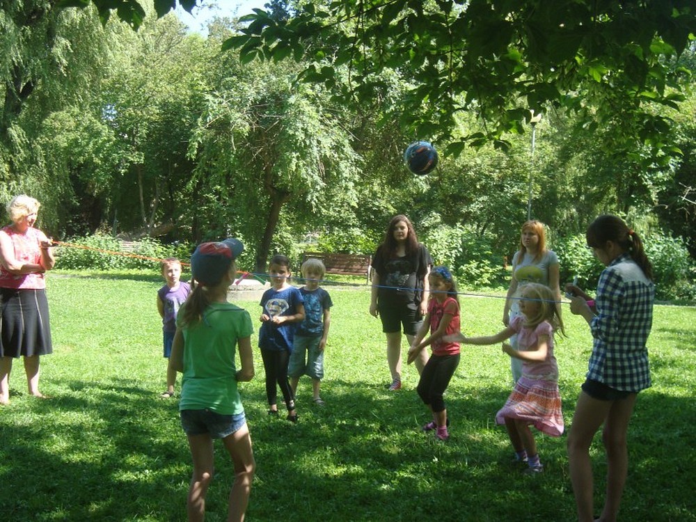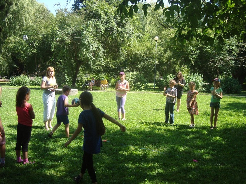 ...uświadomił nam to kolejny dzień naszej podróży wakacyjnej. Po raz kolejny pan Wojciech Broda-Żurawski odwiedził nas, by przekonać się czy jego mali aktorzy zrobili postępy. Dzieci i ich panie przyniosły swoje ulubione maskotki, by opowiedzieć ile znaczą dla nich ich pluszowi przyjaciele. W kolejnej części zajęć obejrzeliśmy prezentację o Koszalinie by z dumą stwierdzić, że nasze miasto jest najpiękniejsze. Poznaliśmy legendę Gracjana Bojara-Fijałkowskiego „O zbójcach z Góry Chełmskiej". Z radością więc poszliśmy śladem uroków koszalińskich widoków, by na żywo podziwiać historię Koszalina. Po drodze spotkaliśmy miłośnika naszego regionu, pana Lecha Fabiańczyka, który opowiedział nam ciekawostki o muzeum koszalińskim. Idąc zaś parkiem poznaliśmy gatunki drzew chronione prawem. Po zaspokojeniu dziecięcej ciekawości postanowiliśmy wspólnie się bawić, grając w zbijaka, piłkę siatkową i skacząc na skakance. Na koniec dla zabawy polewaliśmy się wodą z kubeczków i w bardzo dobrych nastrojach wróciliśmy do biblioteki, gdzie na dzieci czekali już rodzice.