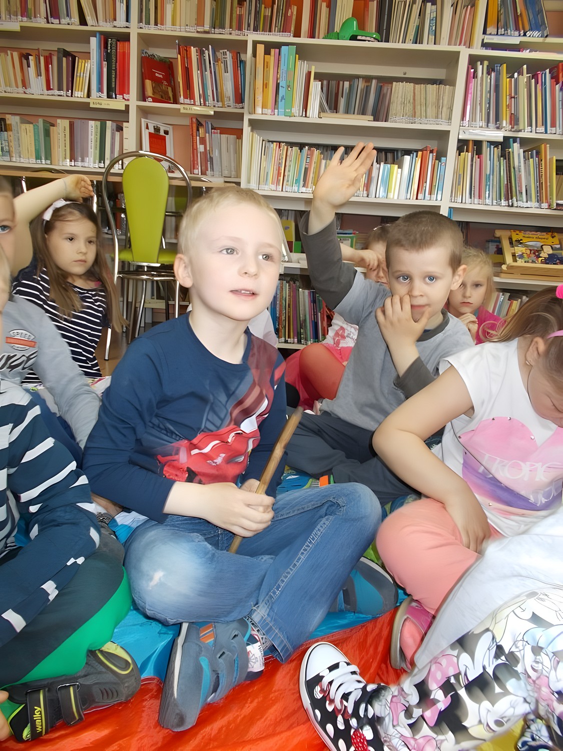 Grupa „Motylków" 5 i 6 latków z Przedszkola 21 przybyła z wizytą do naszej biblioteki. Dzieci zapoznały się z nowym dla nich miejscem, dowiedziały się jak zostać małym czytelnikiem oraz chętnie brały udział w zabawach. Podczas zajęć wyobrażały sobie jak zostać pięknym i kolorowym motylem latającym po łące. Na zakończenie spotkania był słodki poczęstunek, a przedszkolaki w radosnym nastroju wróciły do przedszkola.
