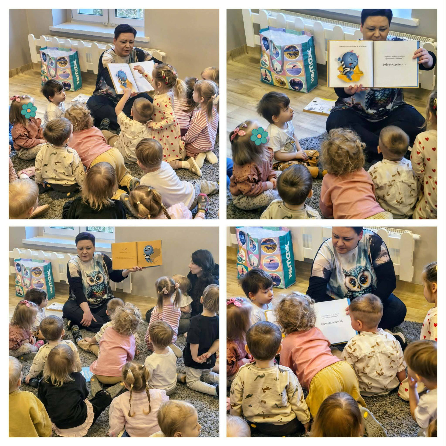Podczas wizyty dzieci wysłuchały książek „W twojej książce jest potwór” Toma Fletchera oraz „Pobujaj owieczkę” Nico Sternbaum.