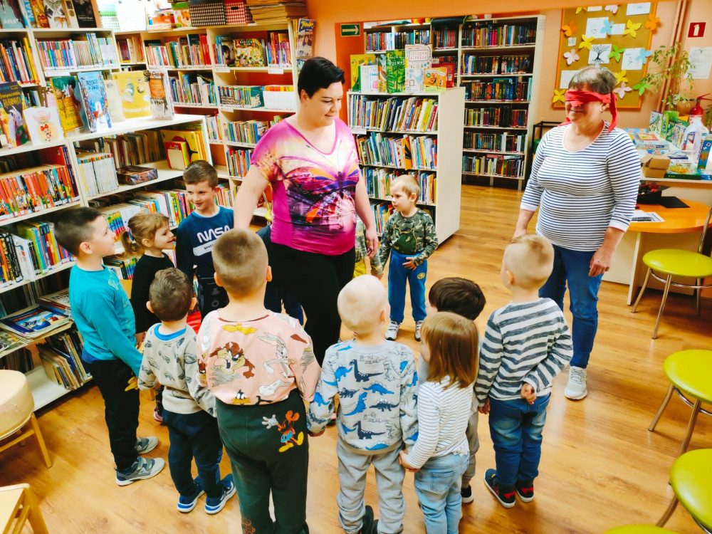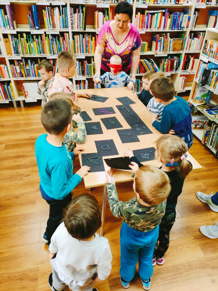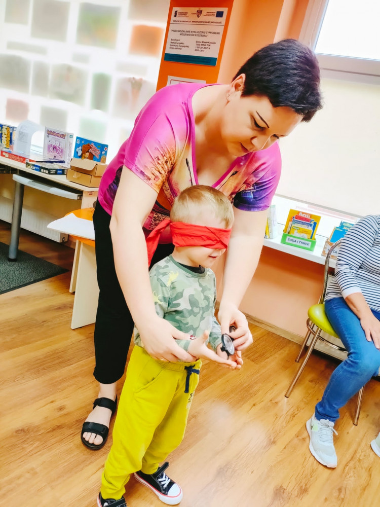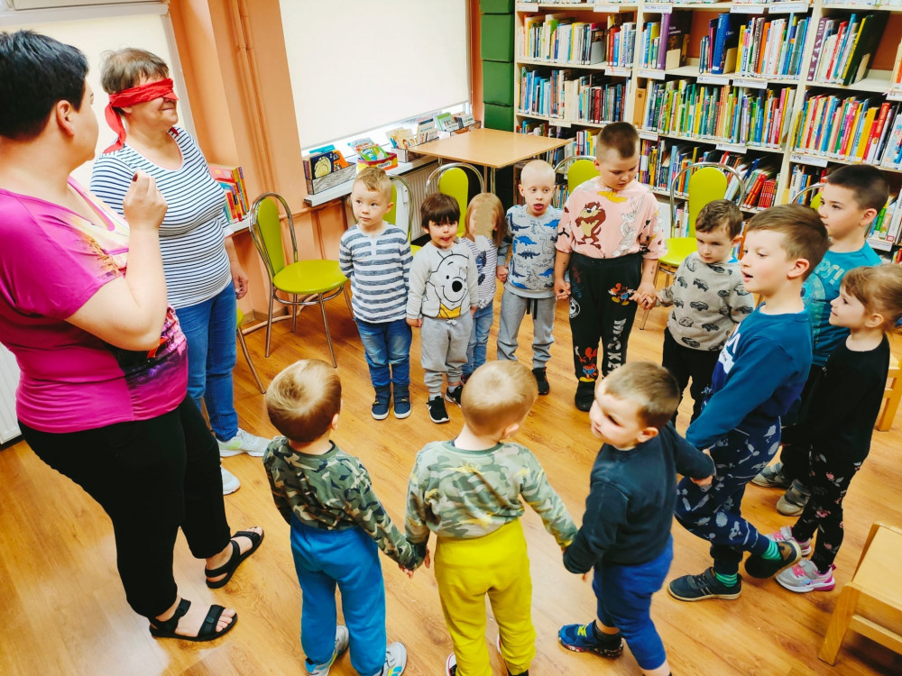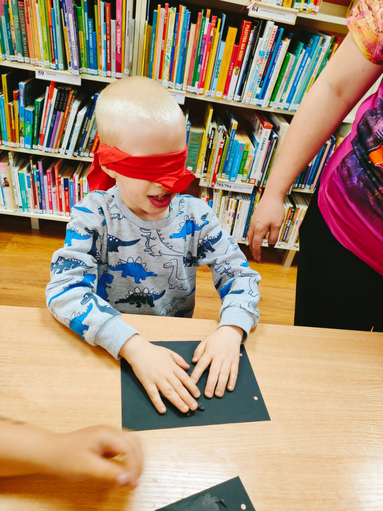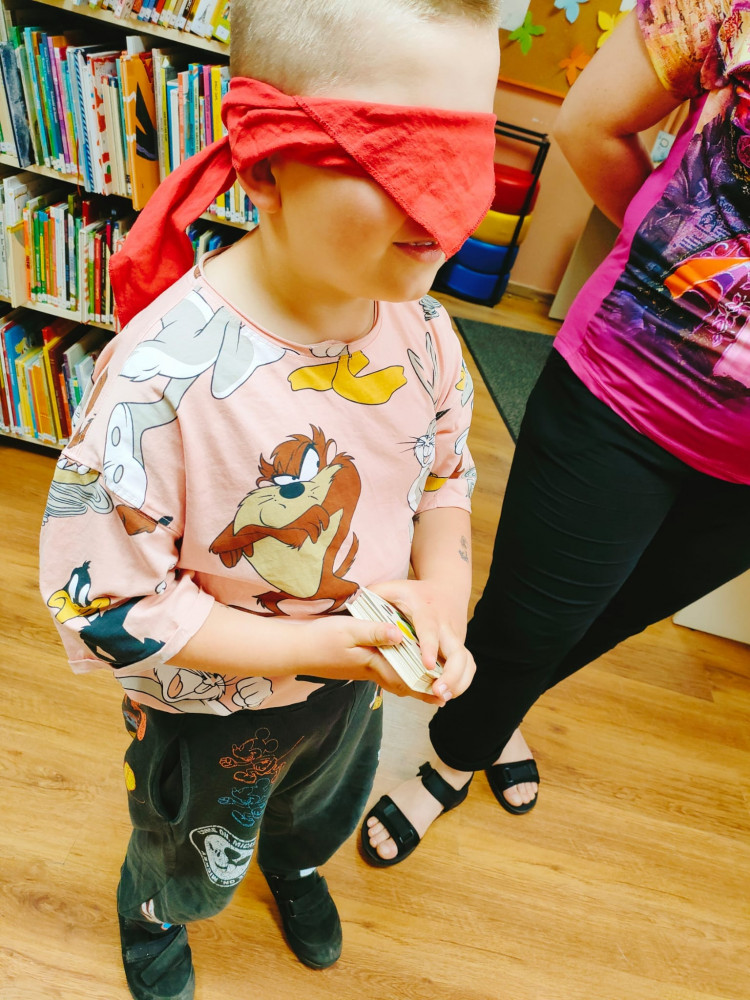 Dzieci wczuwały się w rolę osoby niewidomej, wykonywały zadania z odgadywaniem przedmiotów, ilustracji oraz głosu w zabawie "Hop hop".
