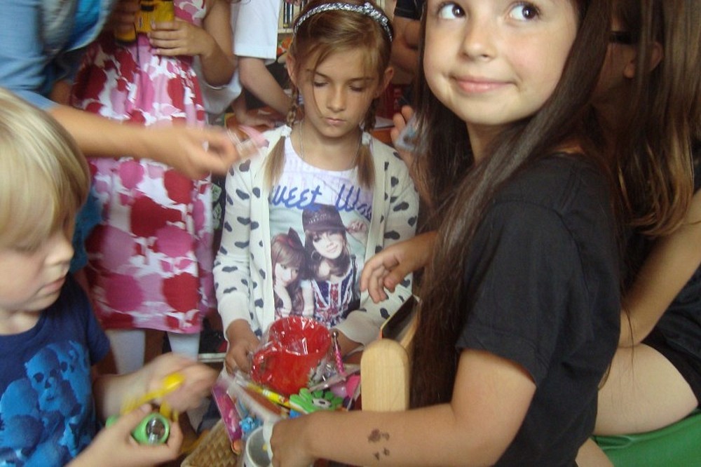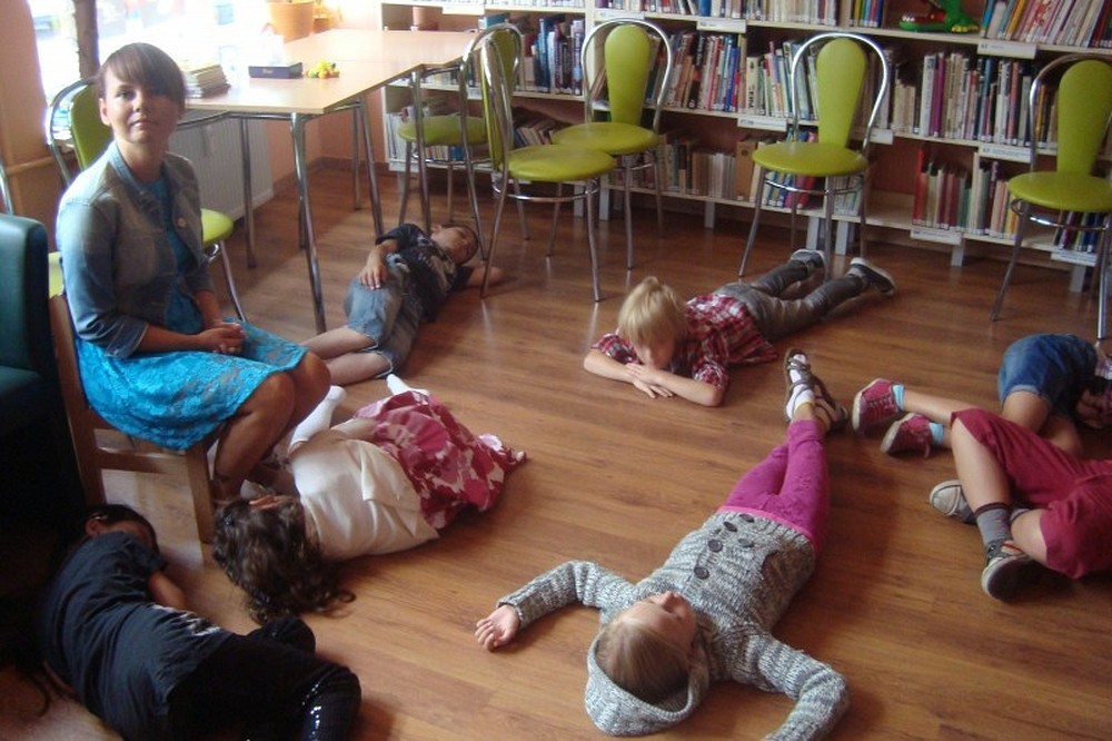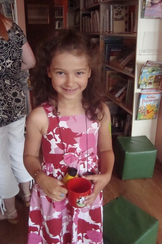 Rozstania nadszedł już czas, ale to nie koniec przygody z biblioteką, która chętnie ugości małego i dużego czytelnika. Pożegnanie grupy rozpoczęliśmy od wspomnień z naszej wakacyjnej wyprawy. Potem była podróż nad morze, czyli zabawa relaksacyjna z szumem morza w tle. Poczuliśmy się jak delfiny pluskające się w wodzie. Następnie każde dziecko otrzymało upominki, które wywołały uśmiech na ich twarzach Wspólne wakacje zakończyliśmy wycieczką na kręgle.