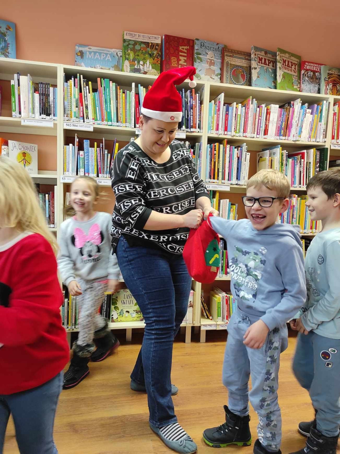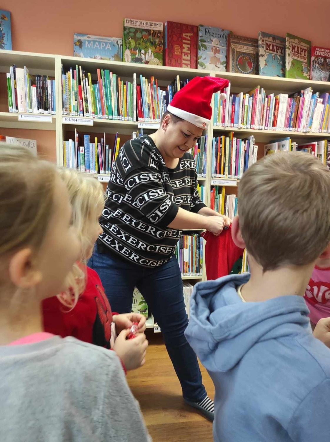 No, ale wróćmy do listu w którym Mikołaj zwrócił się do dzieci, by wykonały pewne zadania, to wtedy znajdą niespodziankę ukrytą gdzieś.....w bibliotece.