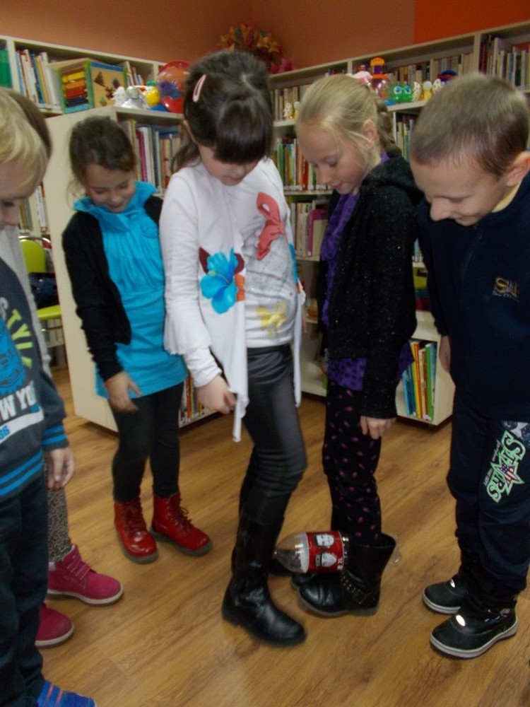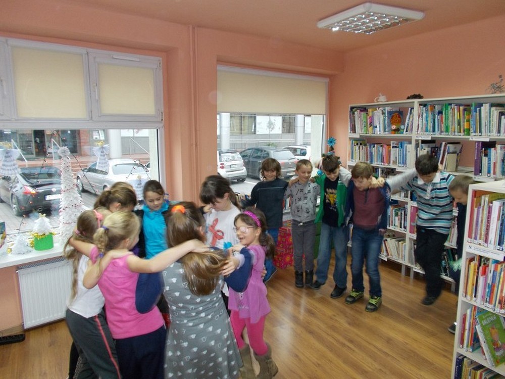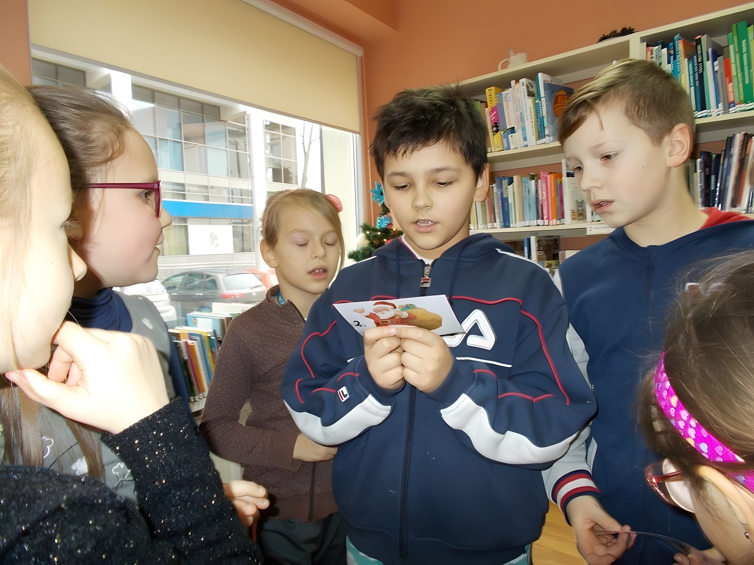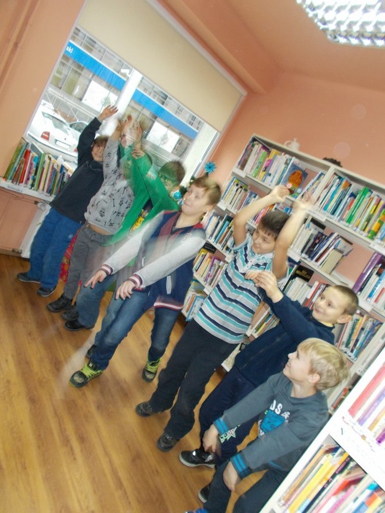 Uczniowie klasy II Szkoły Podstawowej nr 6, wierzą że Święty Mikołaj przynosi prezenty. Aby je zdobyć nasz biblioteczny Mikołaj przygotował dla nich zadania. Dzieci wykonywały je sprawnie i z dużym entuzjazmem. A to musiały zaśpiewać, potem zatańczyć, ułożyć rozsypankę, rzucić celnie kulką do kosza, założyć na lewą stronę bluzkę i wiele, wiele innych czasem nawet śmiesznych zadań. Na zakończenie było najtrudniejsze, bo gdzie w bibliotece Mikołaj schował worek z prezentami? Może w jakiejś książce?