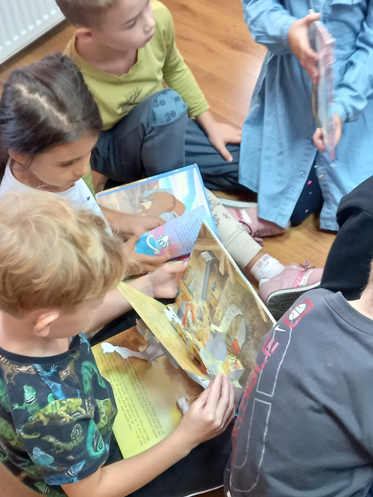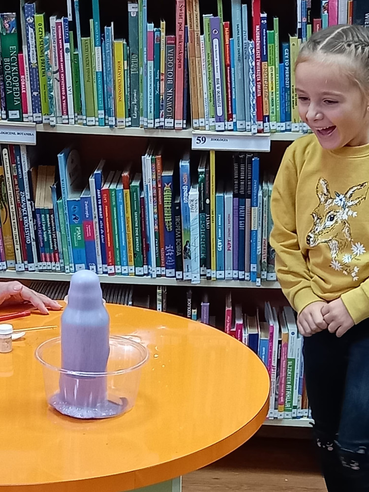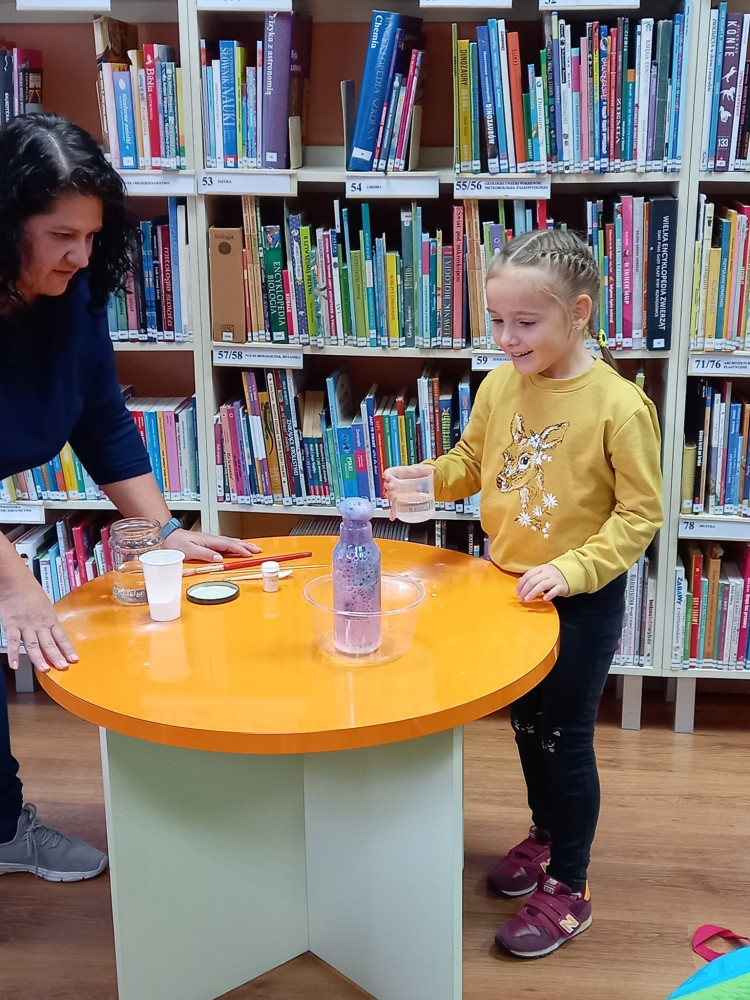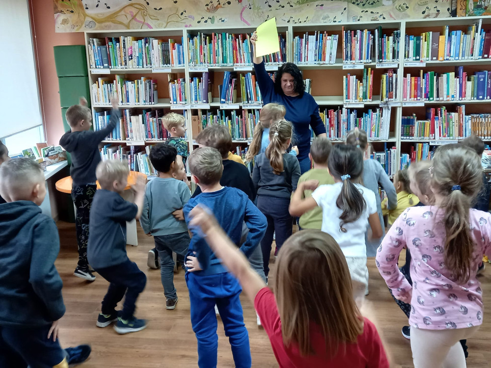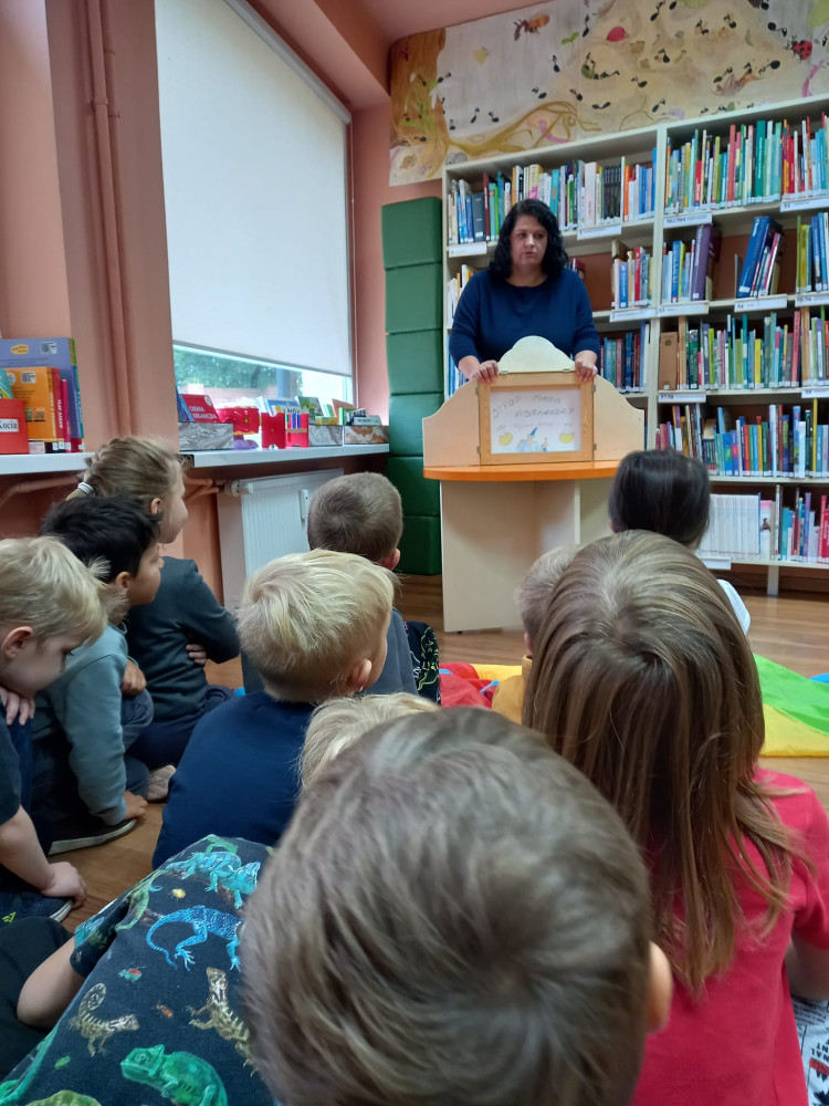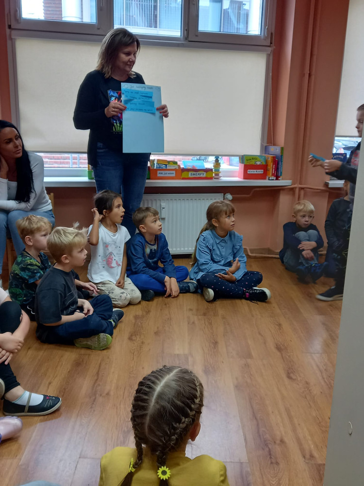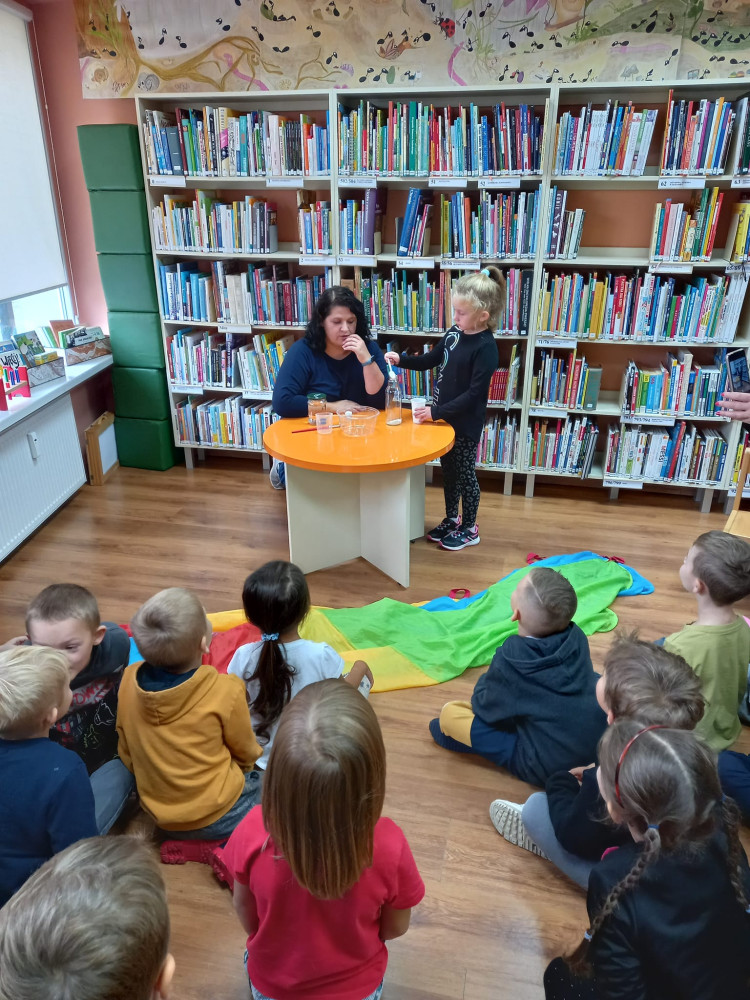 Pomiędzy opowiadaniami bibliotekarka przeprowadziła zabawę w 3 kolory, oraz eksperyment. Na zakończenie przedszkolaki omówiły zasady poszanowania książek i trochę obejrzały, a także poczytały nasze książeczki.