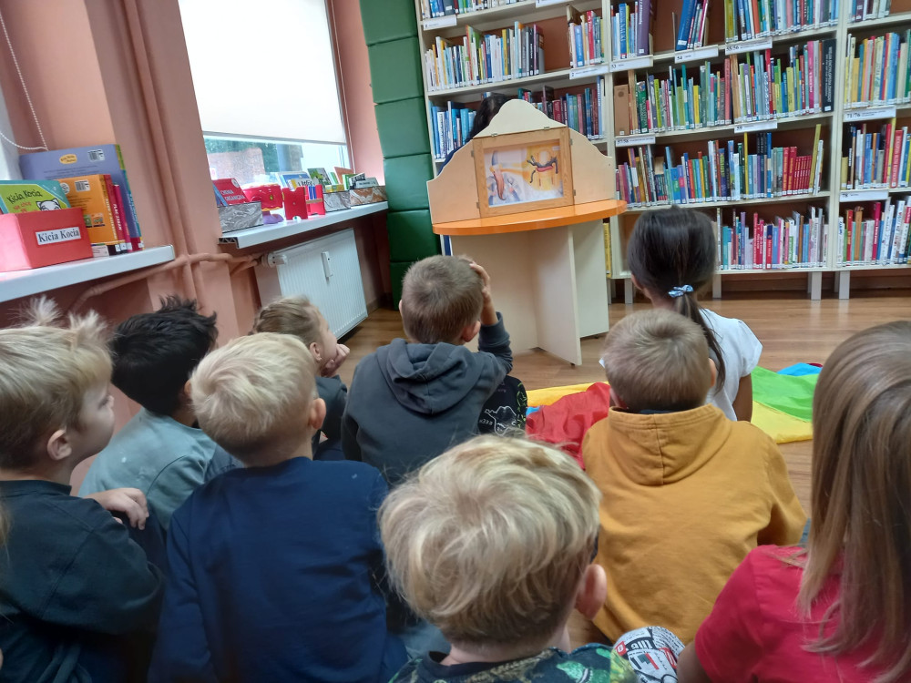 Dziś grupa 6-letnich "Motylków" z Przedszkola nr 21 wysłuchała opowiadania "O wilku, który nie lubił czytać" Orianny Lallemand, potem zapoznały się z teatrzykiem Kamishibai i opowiadaniem Wojciecha Widłaka "Syrop Maga Abrakabry".