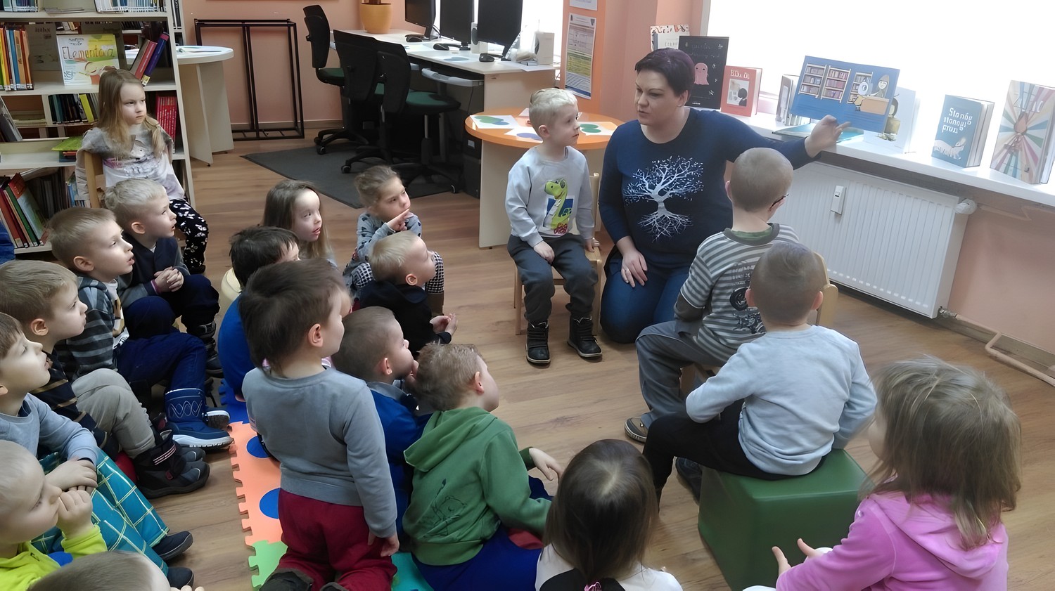 Kolejne spotkanie z dziećmi, tym razem grupa „Motylków” z Przedszkola Happy Days, które wysłuchały opowiadania o Kici Koci i jej wizycie w bibliotece. Motylki dowiedziały się, że w bibliotece nie tylko można wypożyczać książki, ale też bawić się, malować i pisać bajeczki oraz składać motyle. Po wysłuchaniu książeczki i zabawie dzieci wykonały swoje piękne motyle.