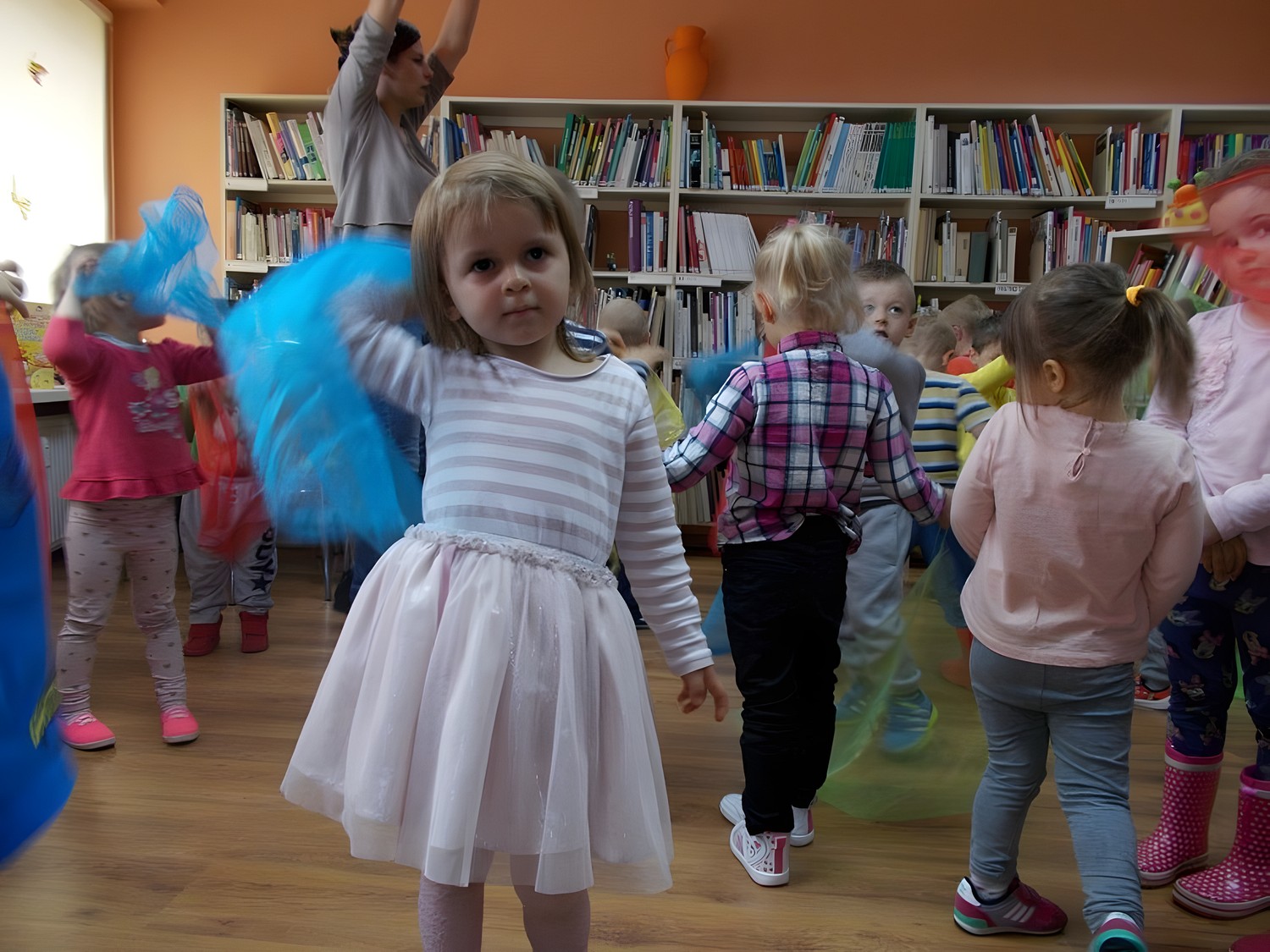 W piękny majowy dzień przybyły do nas trzyletnie "Motylki" z Przedszkola Happy Days. W wiosennym nastroju i motylkowym klimacie rozmawialiśmy o naszej wyobraźni, a także wysłuchaliśmy opowiadania o wiosennym motylu. Nasze małe motylki podczas spotkania wykazały się znajomością kolorów i barw wiosennych, a także zaprezentowały kolorowe tańce z chusteczkami i balonami. Po krótkich zabawach dzieci przystąpiły do tworzenia swoich własnych motyli z plasteliny.