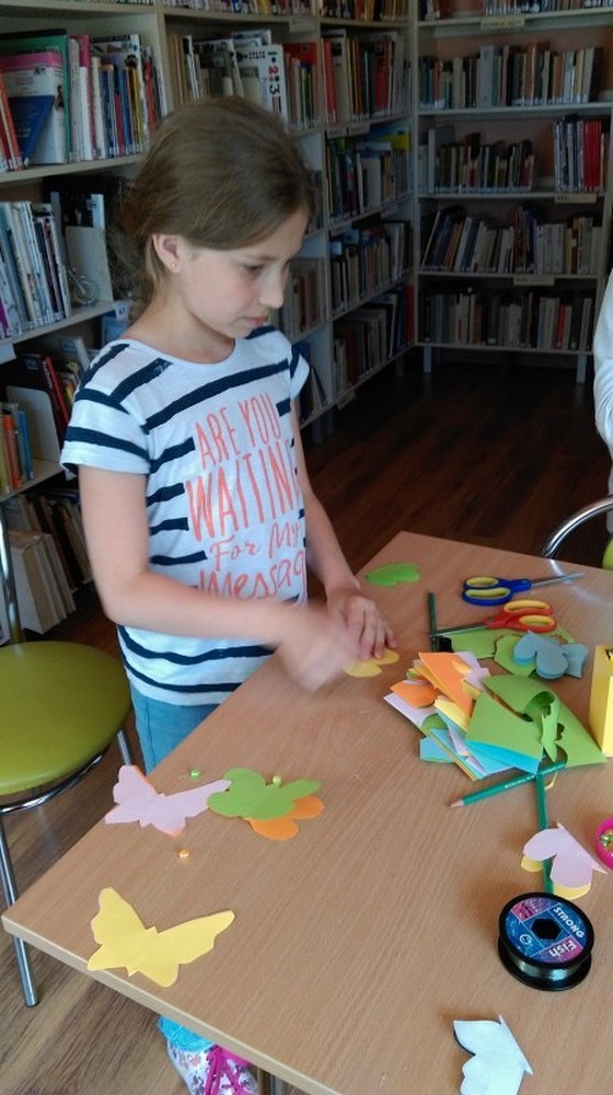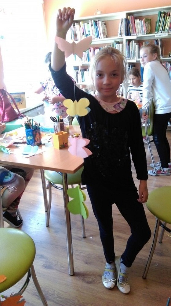 W każdy czwartek spotykamy się z naszymi czytelnikami, którzy lubią książki i nie lubią się nudzić. Tym razem inspiracją do zajęć był motyl. Nasi czwartkowi uczestnicy wykonali motylkową dekorację okienną, którą można podziwiać w bibliotece. Pomysł tak im się spodobał, że postanowili wykonać ozdoby również do swojego domu i ozdobić swoje okna. A oto efekt naszej pracy.