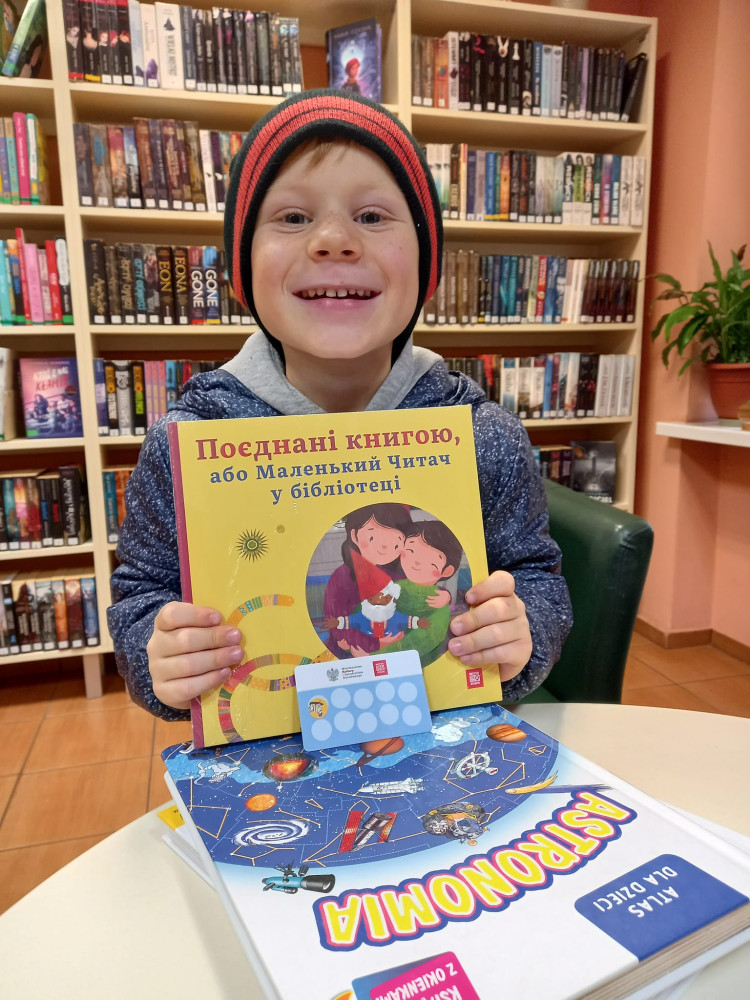 Dopiero świeża dostawa pakietów, a już pierwszy czytelnik Dymitro oraz czytelniczka Weronika zapisali się do biblioteki i wezmą udział w krasnalowej akcji Mała Książka Wielki Człowiek. Widać jaki Dymitro zadowolony, a Weronika trochę onieśmielona!!!