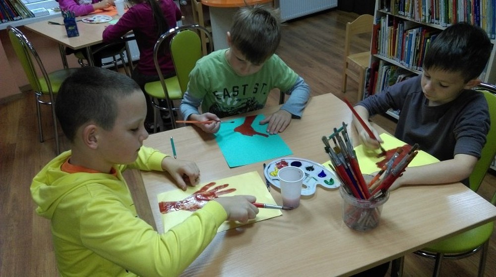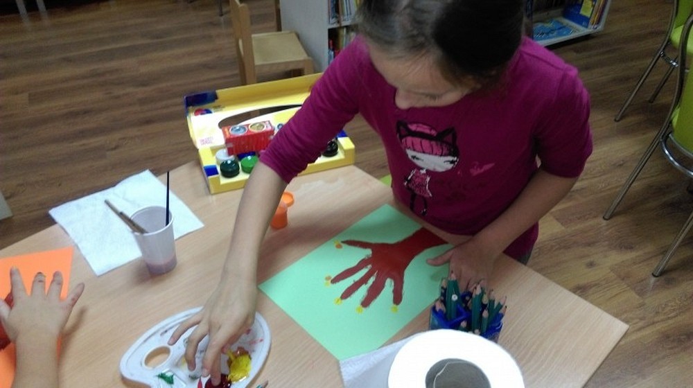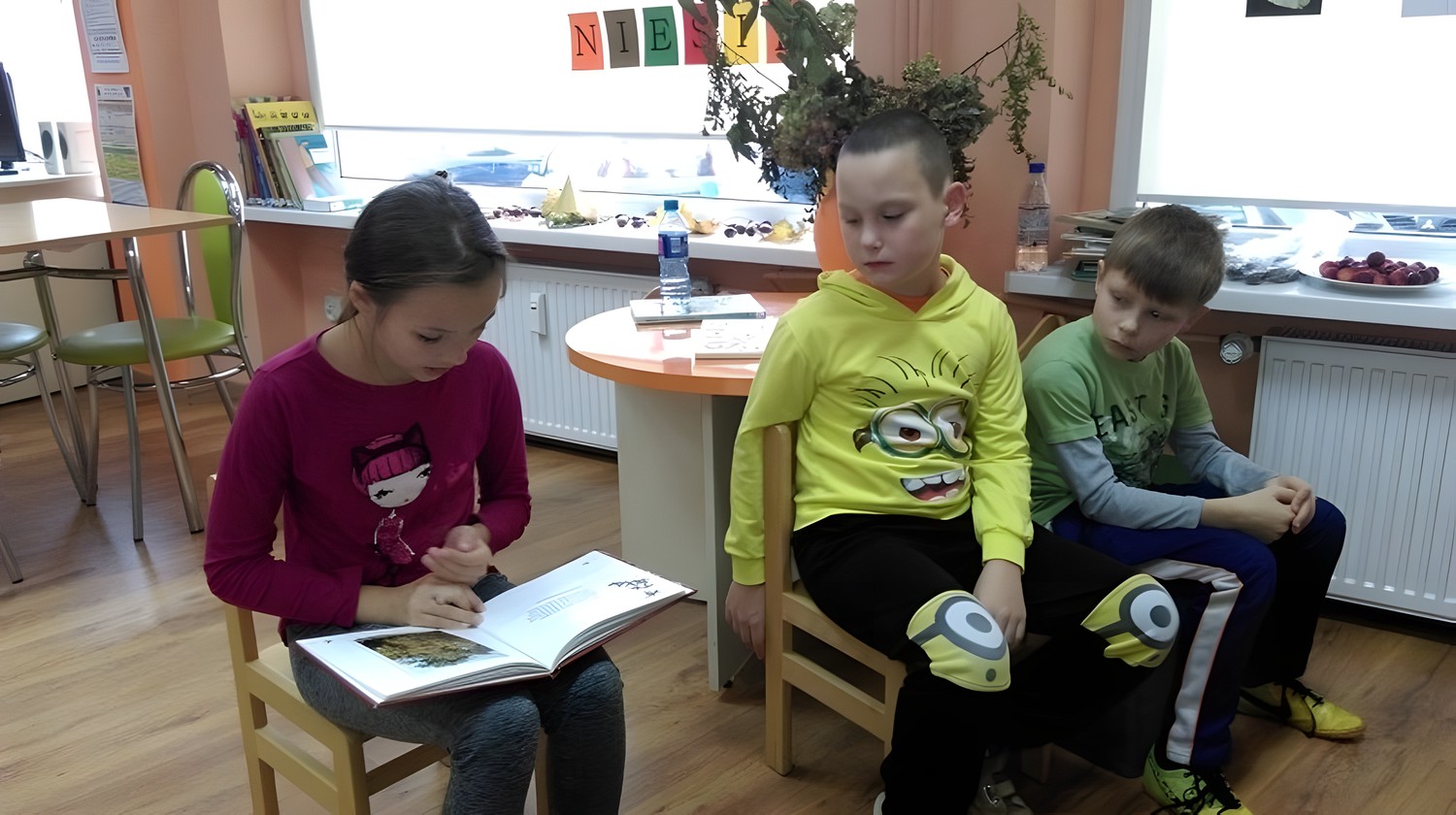 Piątkowe spotkanie naszych miłośników książki rozpoczęliśmy od rozmowy o naszej polskiej złotej jesieni. Co zmienia się w przyrodzie, jakie gatunki drzew znamy i ich jesienne owoce. Następnie czytaliśmy wspólnie książkę pt. „Jesień liścia Jasia", ciepłą, mądrą opowieść o życiu i śmierci. W tej książce liść Jaś i jego przyjaciele zmieniają się wraz z następującymi po sobie porami roku. Na zakończenie spotkania dzieci wykonały swoje jesienne drzewo.