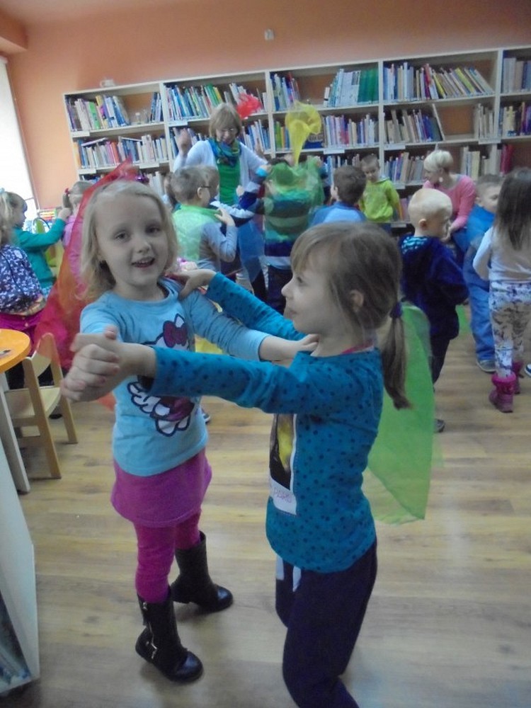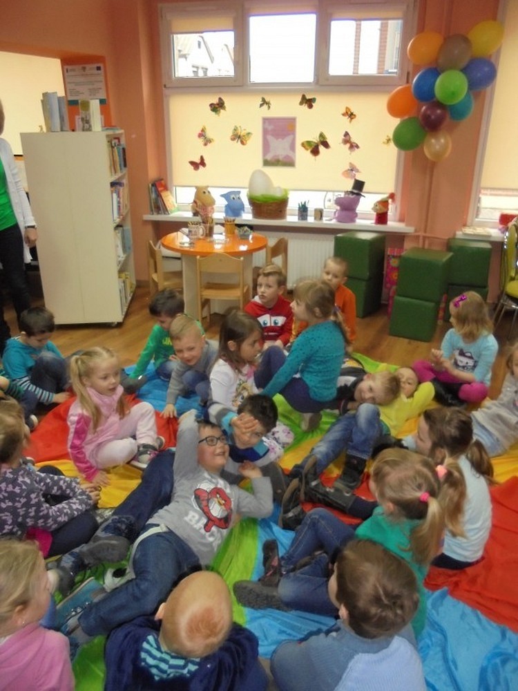 Dnia 11 marca grupa Tygrysków z Przedszkola Happy Days przybyła do nas na wiosenne spotkanie. Tematem spotkania była podróż do Krainy Wyobraźni. Dzieci poznały opowiadanie o kolorowych motylach, następnie maluchy bawiły się przy muzyce kolorowymi chusteczkami. Okazało się, że dzieci mają bogatą wyobraźnię i potrafią zrobić coś z niczego. W wiosennej scenerii dzieci tworzyły niepowtarzalne i piękne motyle.