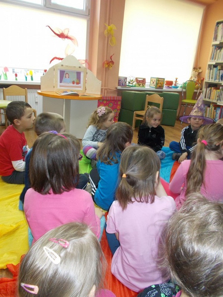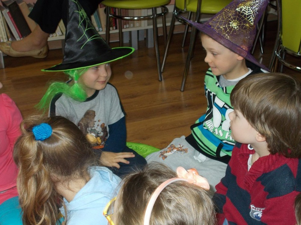 Przedszkolaki z Przedszkola nr 10, grupa 5-latków zna już i używa magiczne słowa. Czasem zdarzy się użyć brzydkiego wyrazu, ale po naszym spotkaniu już wiedzą, że nie powinno się ich używać, bo mogą nam „powiędnąć uszy" mimo iż to nie roślina. Dzieci wykazały się dużą kreatywnością podczas zabawy z figurami geometrycznymi i z naszej malutkiej czarownicy ułożyły świnkę. Na zakończenie spotkania był słodki magiczny poczęstunek.