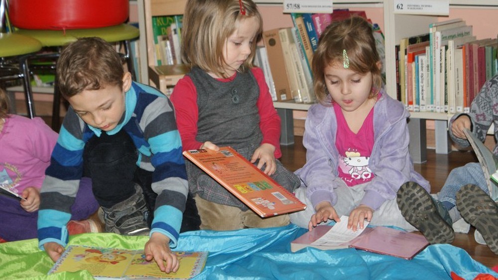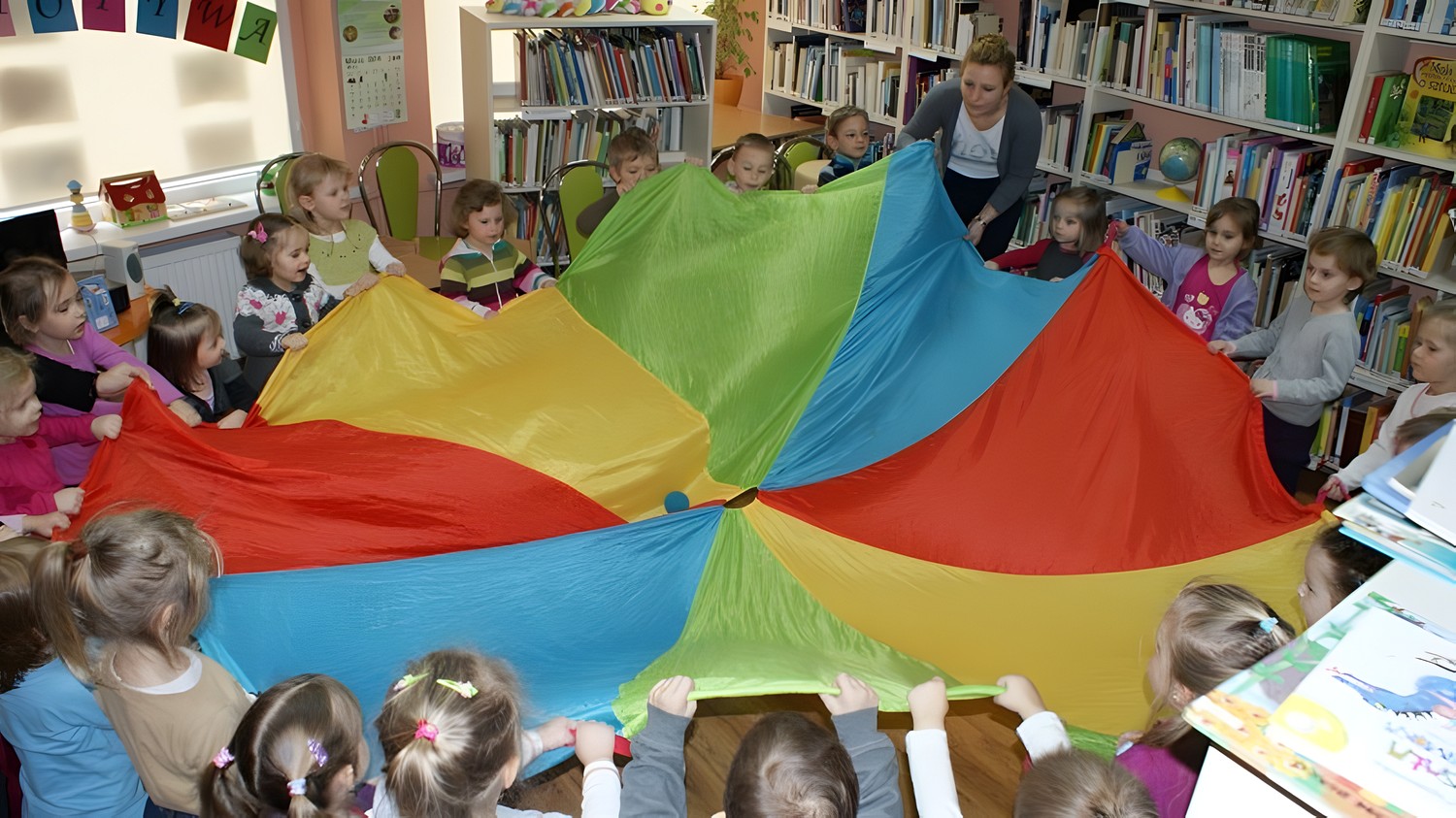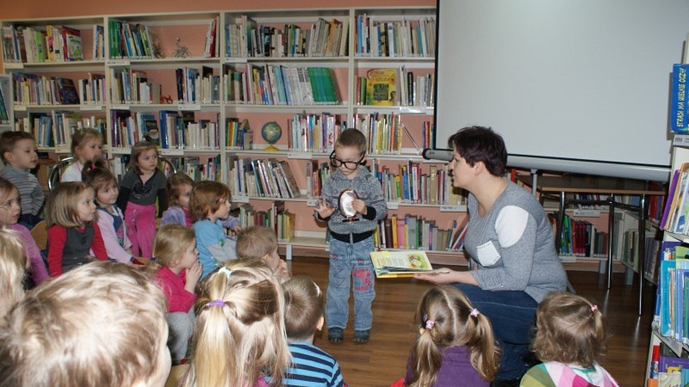 Grupa 3 latków z Przedszkola nr 13 po raz pierwszy odwiedziła naszą bibliotekę. Przedszkolaki wyruszyły w magiczną podróż lokomotywą Juliana Tuwima. Obejrzały prezentację multimedialną i wcieliły się w niektóre postacie z wierszy pisarza. Z wielkim zainteresowaniem przeglądały nasz bogaty księgozbiór dla dzieci, a także uczestniczyły w wesołej zabawie z chustą. Na zakończenie długim i wesołym pociągiem wyruszyliśmy w podróż po naszej bibliotece, a spotkanie zakończyliśmy słodkim poczęstunkiem.
