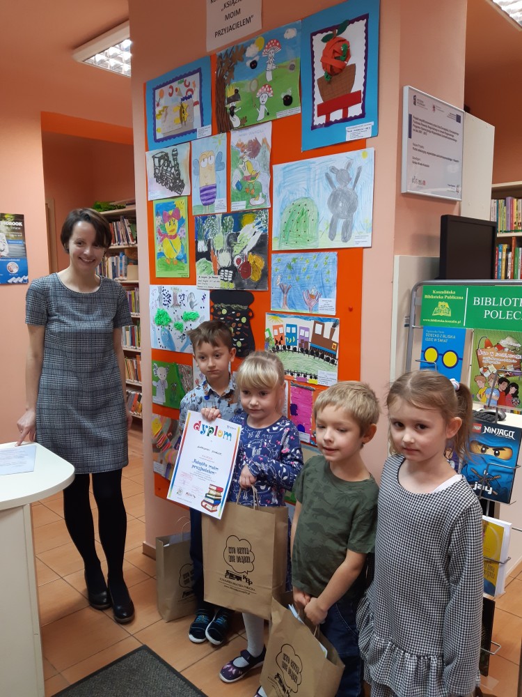 Dziś w naszej filii odbyło się uroczyste rozstrzygnięcie konkursu plastycznego pt. "Książka moim przyjacielem". Na konkurs wpłynęło 20 prac i wszystkie zostały nagrodzone oraz 3 prace zostały wyróżnione. Upominki ufundowała Rada Osiedla "Na Skarpie", Koszalińska Biblioteka Publiczna oraz Przedszkole nr 23. Pani dyrektor Beata Sawa-Jovanowska wraz z przewodniczącą Rady Osiedla panią Teresą Tomczyk wręczyły nagrody dzieciom z Przedszkoli nr 23, 9, 37 oraz Przedszkola Integracyjnego. Wszystkim dzieciom serdecznie gratulujemy i życzymy dalszych sukcesów w konkursach!