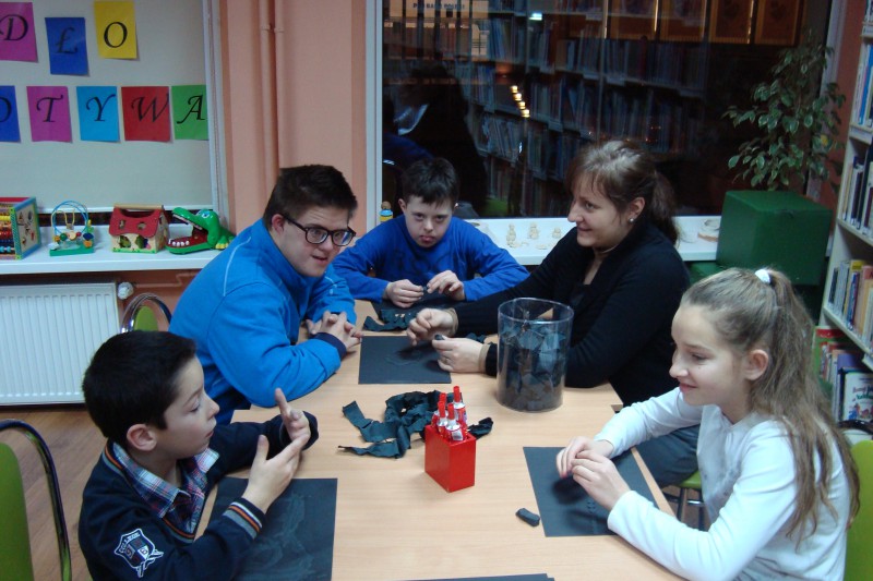Podopieczni Pani Sylwii-grupa chłopców ze Specjalnego Ośrodka Szkolno-Wychowawczego uczestniczyła w spotkaniu z Czarną książką kolorów.