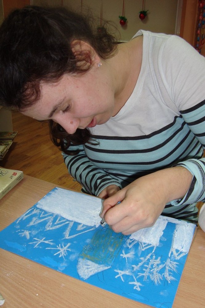 Pierwsze spotkanie w nowym roku z podopiecznymi SOSW przebiegło w miłej i ciepłej atmosferze. Tym razem wspominaliśmy i opowiadaliśmy o minionych już świętach, a także rozmawialiśmy o zimie. Nasi uczestnicy zajęć namalowali zimowe pejzaże, kto wie może jeszcze zima do nas powróci...