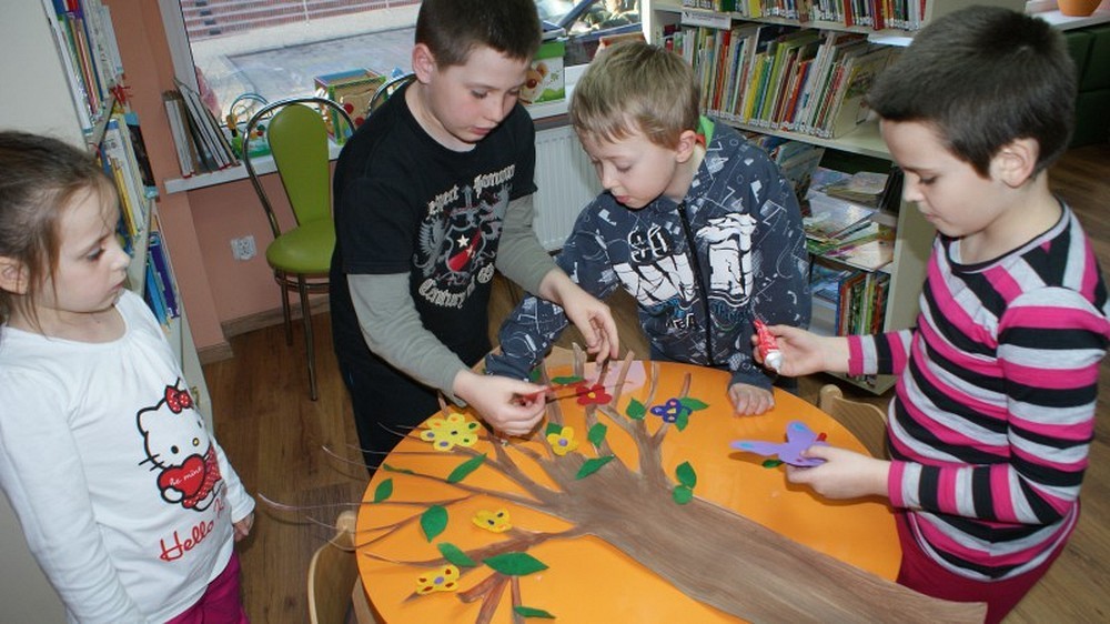 21 marca obchodzimy pierwszy dzień wiosny i do naszej biblioteki również zawitała Pani Wiosna. Nasi uczestnicy cyklicznych spotkań czwartkowych wykonali własne drzewo wiosenne, które można podziwiać w witrynie okna biblioteki. Zapraszamy do oglądania naszej wystawy i na spotkania w każdy czwartek miesiąca.