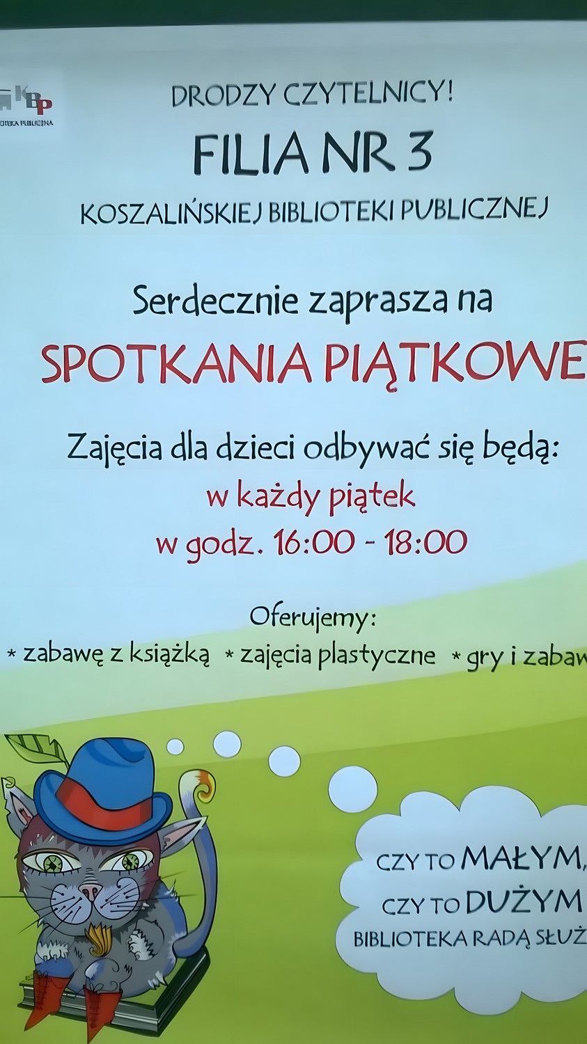 Zapraszamy najmłodszych miłośników książki i dobrej zabawy na pierwsze, w tym roku szkolnym, spotkanie już w piątek 7 października.