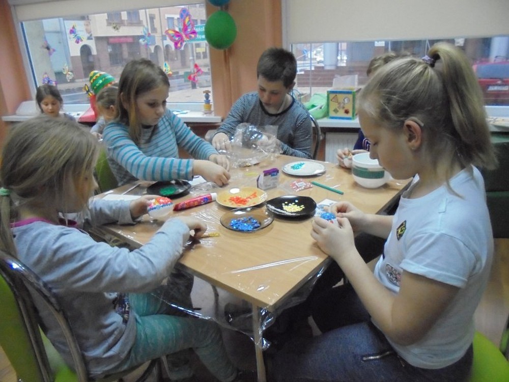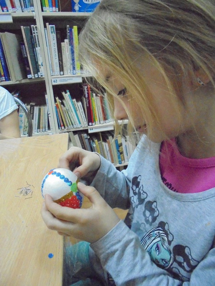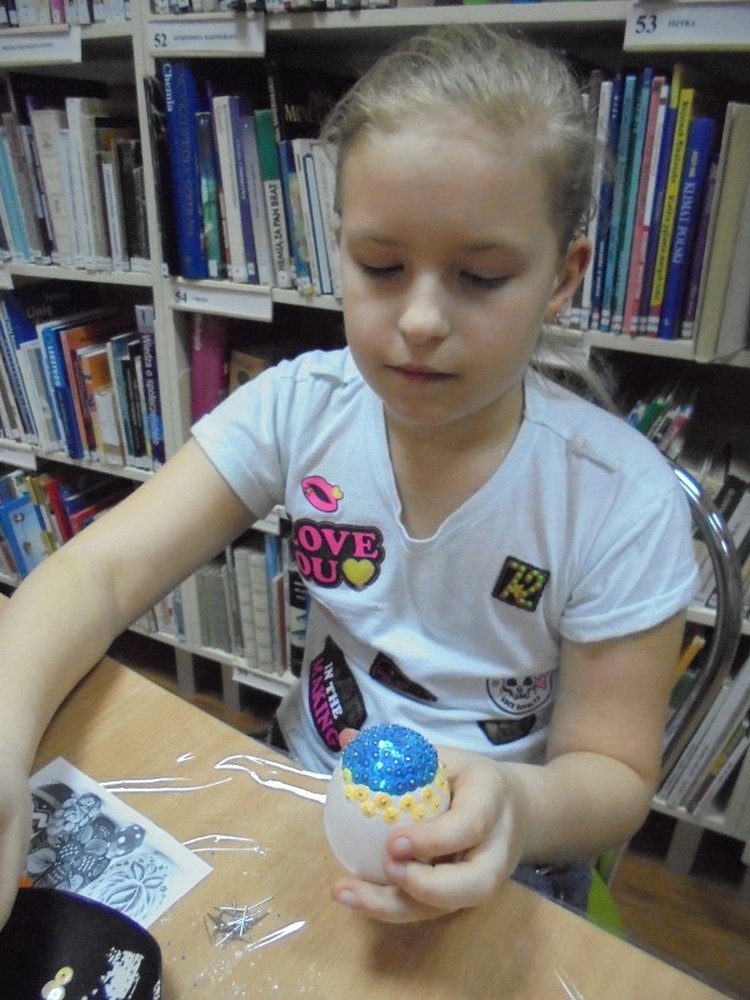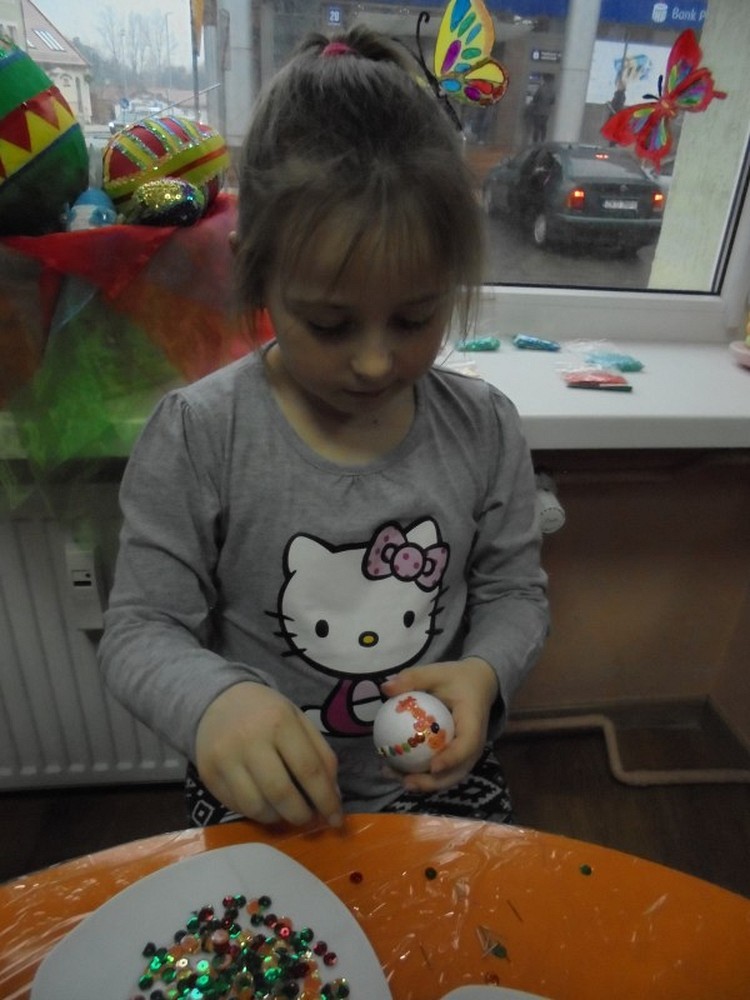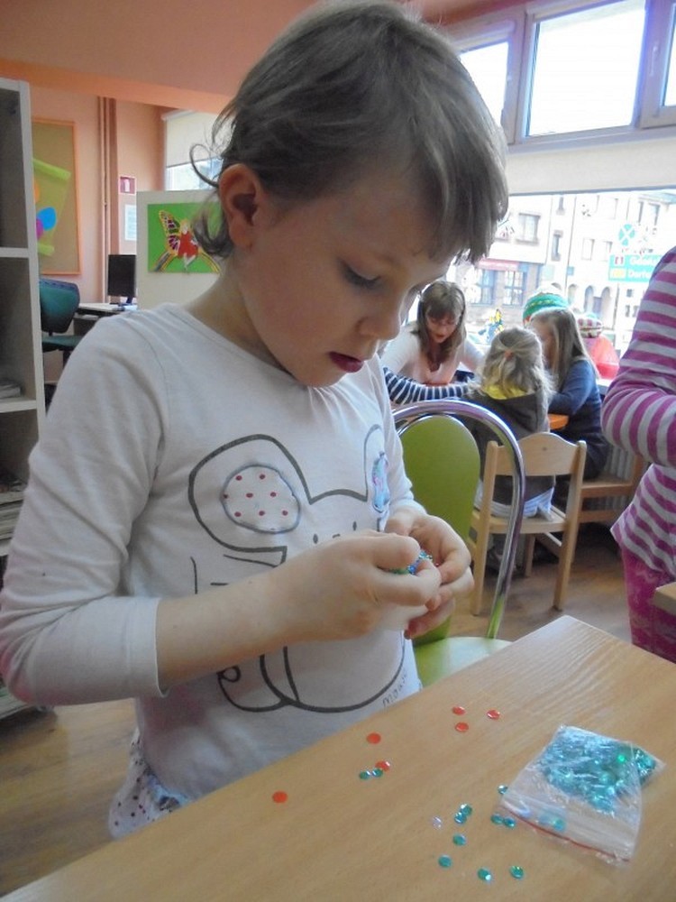 Święta Wielkanocne za pasem, a my jeszcze szykujemy się do Świąt.. Dzieci zrobiły już palmy i nadszedł czas na wykonanie pisanek. W tym roku powodzeniem cieszyły się jajeczka zdobione cekinami i brokatem. W trakcie spotkania rozmawialiśmy o zwyczajach i obrzędach wielkanocnych panujących w naszych domach. Spotkanie zakończyliśmy zabawą i zgodnie z tradycją stukaliśmy się jajeczkami życząc sobie Wesołych Świąt.