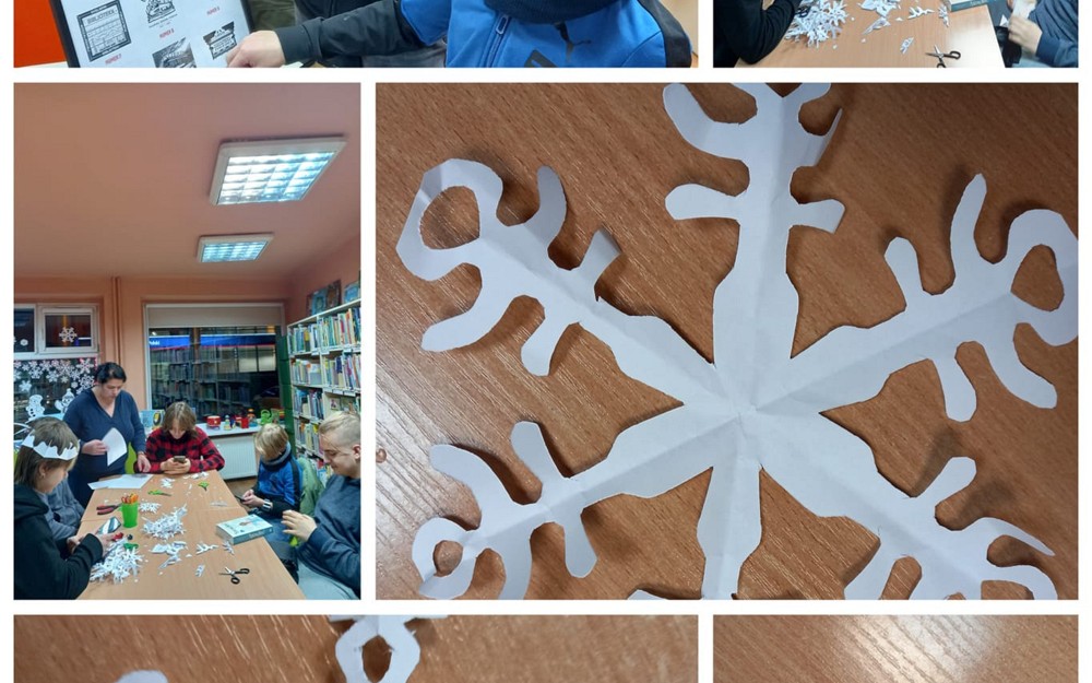 Dzisiejsze spotkanie naszych redaktorów gazetki "Głos dziecięcy", głosowanie na Ekslibris Biblioteki i śnieżynki dla relaksu, by ozdobić naszą bibliotekę.