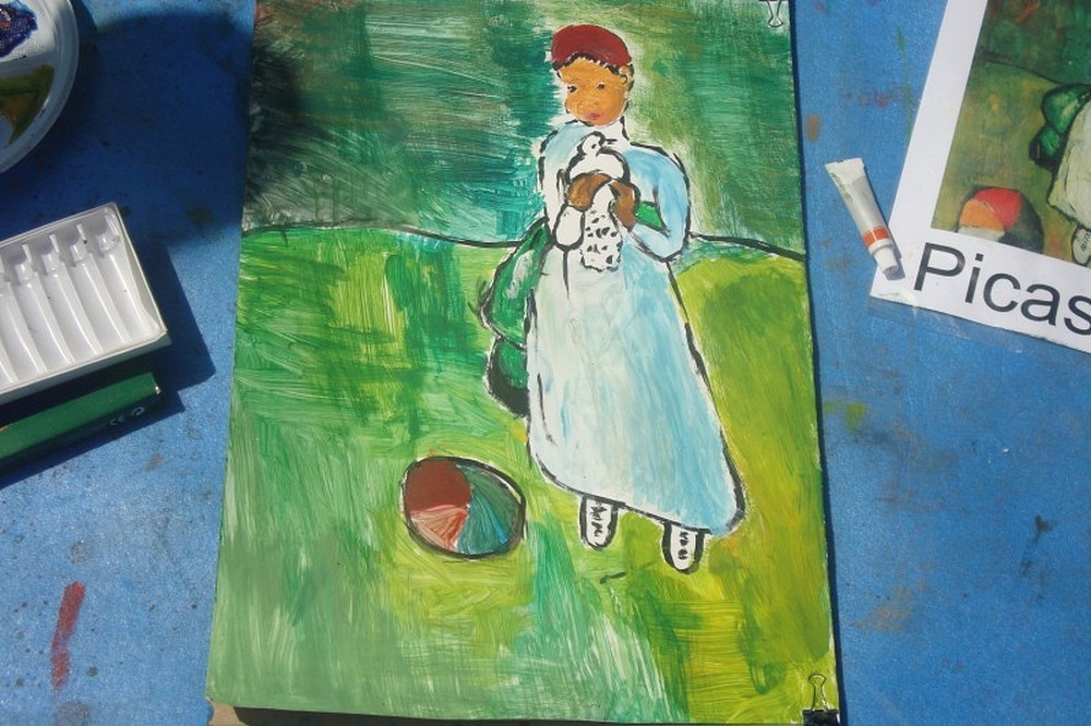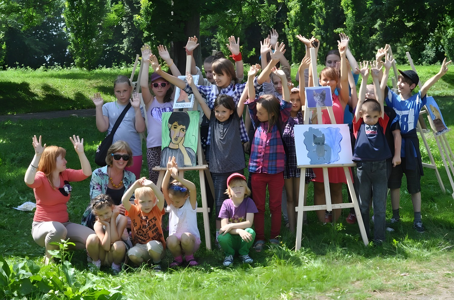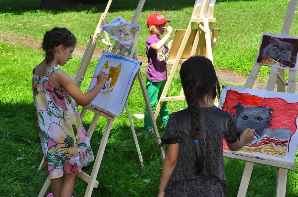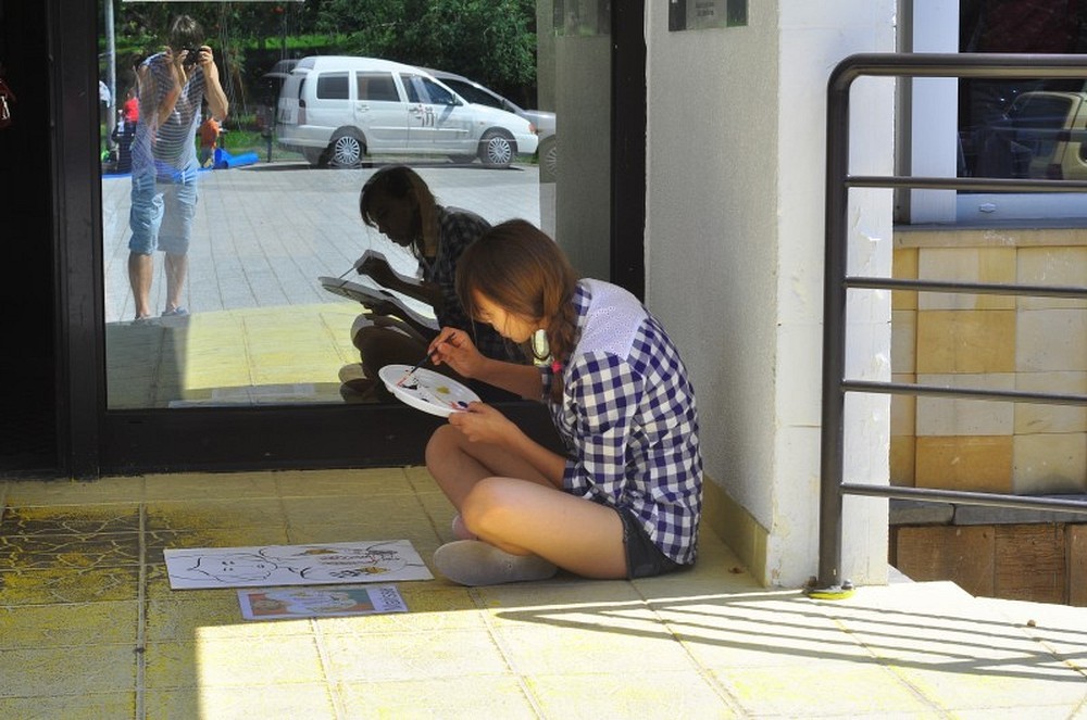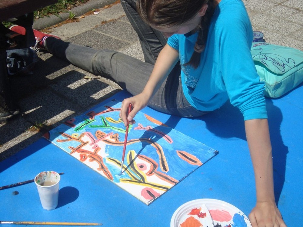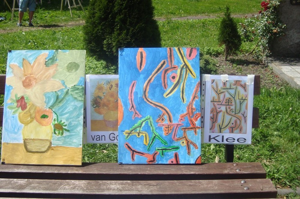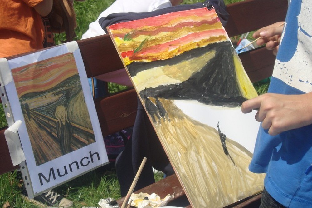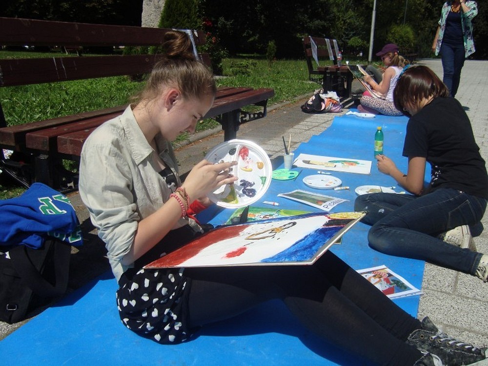 Okolice parku przy Koszalińskiej Bibliotece Publicznej były miejscem warsztatów plastycznych prowadzonych, dla naszych dzieci, przez artystę - Witka Michonia. Dzieci pod okiem pedagoga wzięły pędzle w dłoń i farby były wszędzie - i na kartce i na nosie. Plener i profesjonalizm pana Witka sprawiły, że dzieci stały się malarzami, czego efektem były większe i mniejsze arcydzieła.