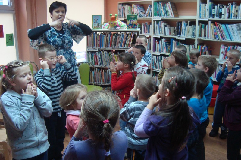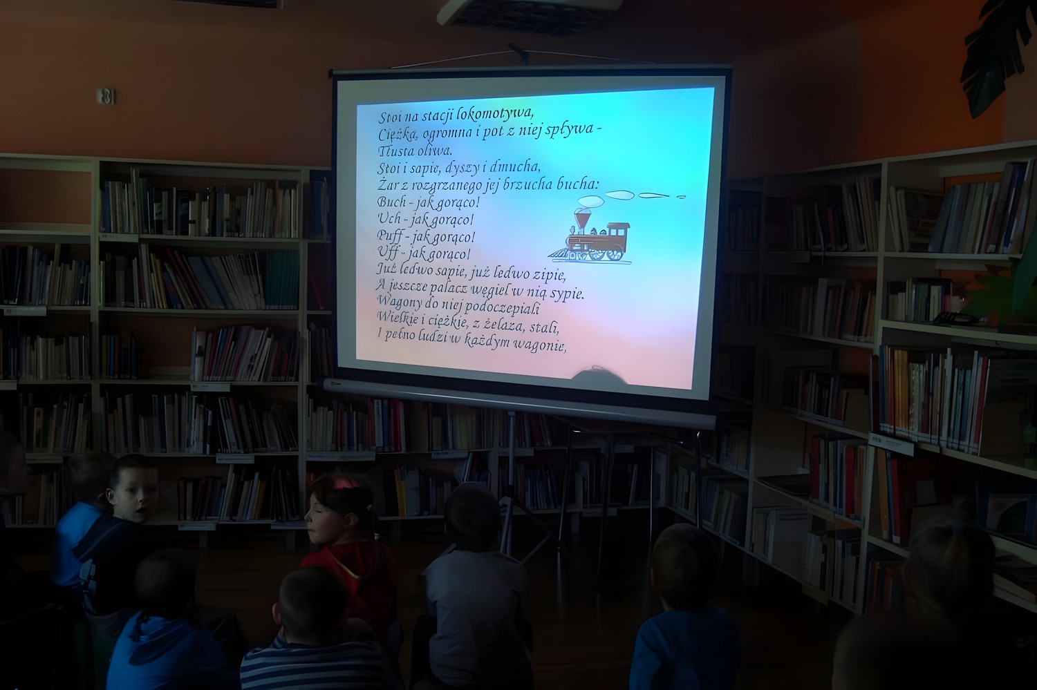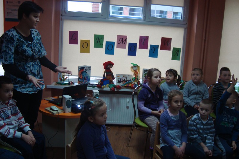 Na spotkanie z wierszami Juliana Tuwima i w podróż kolorową lokomotywą, wyruszyły dzieci ze Szkoły Podstawowej nr 4- grupa "0". Spotkanie z Tuwimem zakończyło się wesołą zabawą.