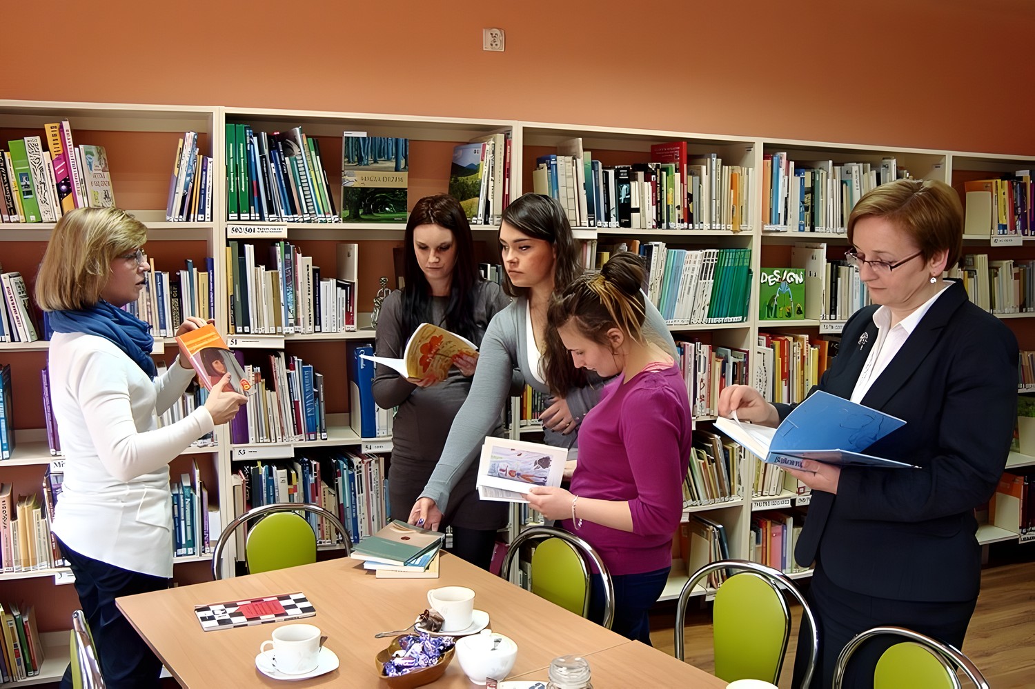 Studentki Państwowej Wyższej Szkoły Zawodowej w Koszalinie, kierunek filologia polska z bibliotekoznawstwem, odwiedziły naszą bibliotekę celem poznania księgozbioru dziecięcego oraz specyfiki działania biblioteki dla dzieci i młodzieży. Studentki były żywo zainteresowane spotkaniem.