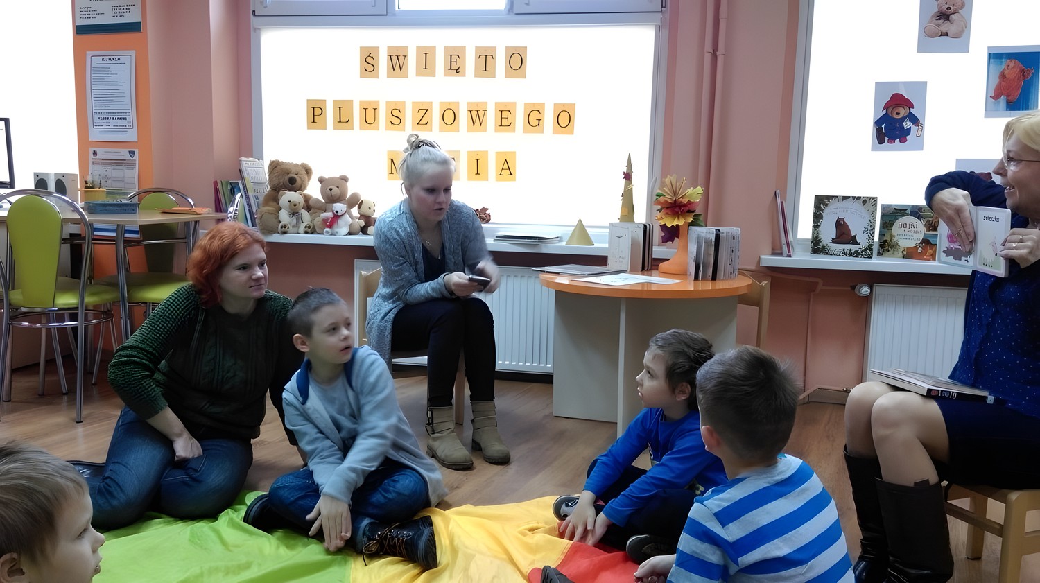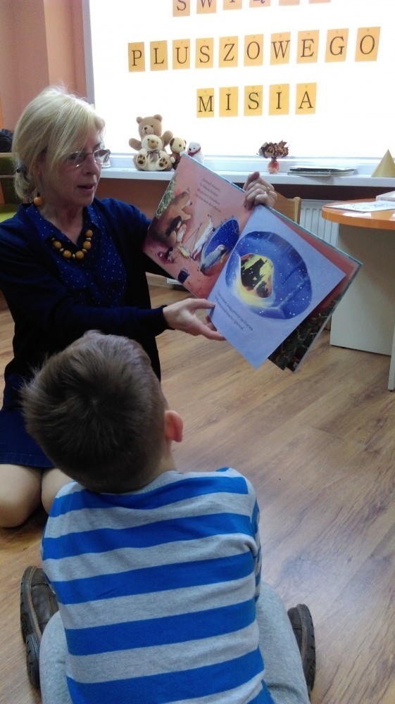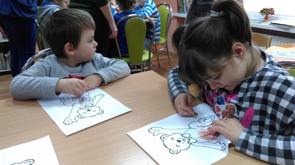 25 listopada odwiedziło nas Niepubliczne Specjalistyczne Przedszkole Terapeutyczne "Mały Książę". W tym dniu świętowaliśmy Światowy Dzień Pluszowego Misia. Święto obchodzone jest na całym świecie od 2002 roku. Mały, duży, bury, kolorowy, milutki, z kokardką czy w kubraczku... Każdy posiada bądź posiadał własnego ulubionego misia pluszowego. Jest to jedna z najpopularniejszych zabawek w Europie już od XIX wieku! Miś pluszowy nieodłącznie kojarzony jest z beztroskim czasem dzieciństwa. Wiele razy był kumplem do zabawy, kompanem podróży, przyjacielem, któremu można wszystko powiedzieć, antidotum na nocne koszmary. Dzieci z przedszkola wysłuchały krótkiego opowiadania o świętach Pana Misia oraz zapoznały się z innymi naszymi książeczkami. Swoje misie pięknie pokolorowały, udawały starego niedźwiedzia, który śpi i oswajały się z biblioteką. Na zakończenie przedszkolaki otrzymały małą niespodziankę od misia.