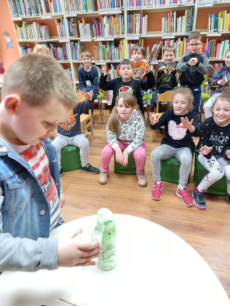 Uczniowie mieli okazję obejrzeć nasz teatrzyk, odgadnąć zagadki do treści opowiadania oraz wykonać magiczny syrop Maga.