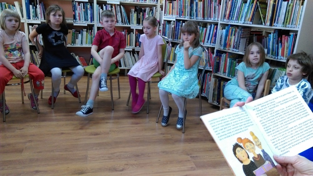Kolejna lekcja z uczniami klasy II b Szkoły Podstawowej nr 6. Uczniowie zapoznali się z naszym księgozbiorem i ciekawymi pozycjami z naszego działu PDM- Problemy dzieci i młodzieży. Wysłuchali książki Ewy Ostrowskiej "Taka miła starsza pani" i uczestniczyli w pogadance o tym jak zachowywać się w różnych sytaucjach. Na zakończenie spotkania była zabawa na spostrzegawczość.
