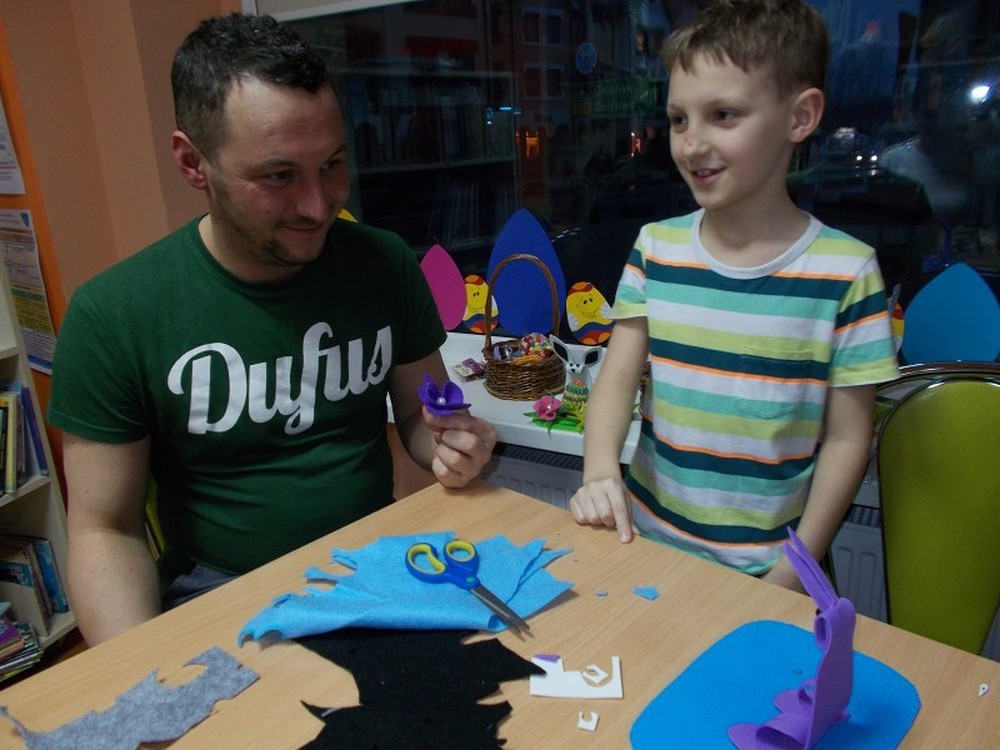 Święta Wielkiej Nocy tuż, tuż, dlatego też nasi uczestnicy Spotkań Czwartkowych z zapałem zabrali się do zrobienia pierwszych ozdób wielkanocnych. Tym razem jest to stroik z wiosennym zającem, który będzie ozdobą na ich wielkanocnym stole. Rodzice dzieci włączyli się do spotkania i z radością opowiadali o zwyczajach i tradycjach panujących w ich rodzinnych domach. Na kolejnym spotkaniu ciąg dalszy przygotowań do Wielkanocy. Zapraszamy.