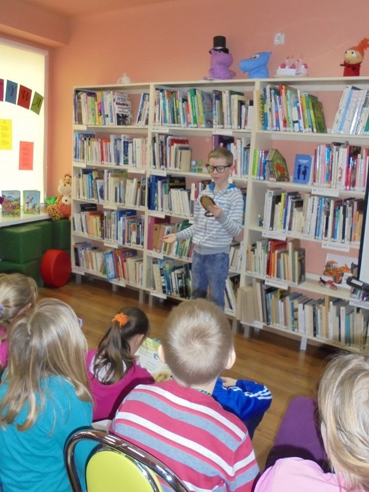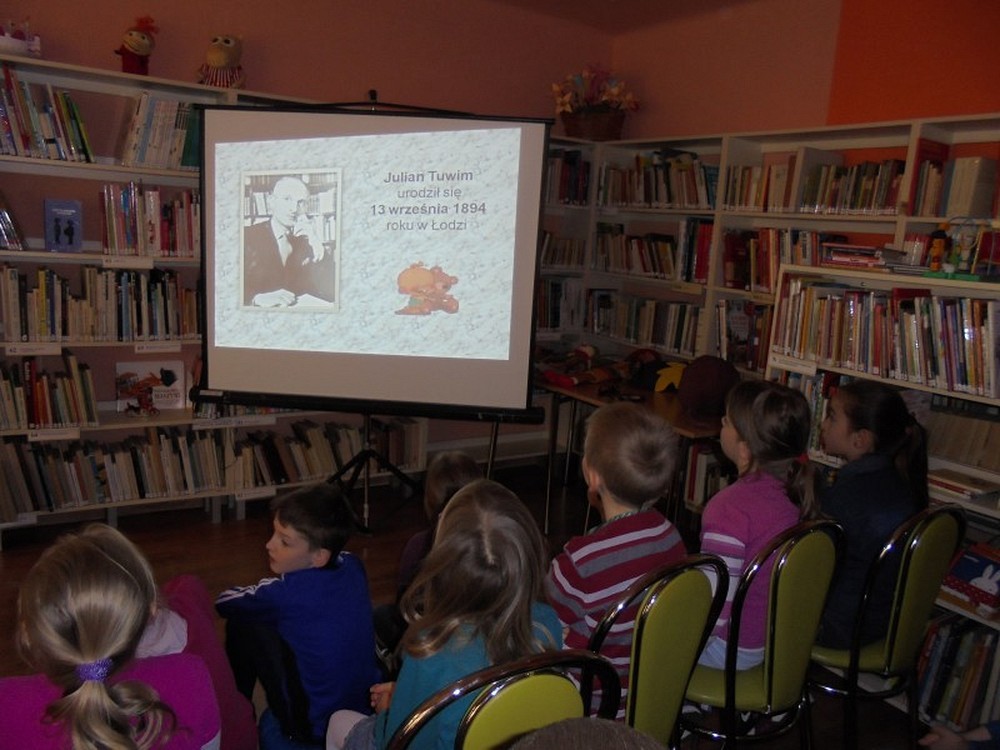 Julian Tuwim i jego wiersze zawsze gwarantują świetną zabawę. Tak było i tym razem podczas spotkania z uczniami klasy III Szkoły Podstawowej nr 6, pod kierunkiem pani Łucji Kozłowskiej. Po wcześniejszym wprowadzeniu, prezentacją multimedialną, w ciekawostki z życia młodego Julka, dzieci z radością odgrywały scenki do czytanych przez siebie wierszy. Bez trudu też poprawnie ułożyły alfabet i dzielnie odgadywały wyrazy na wybrane literki. Bawiliśmy się świetnie. Zwycięzcy otrzymali nagrody, a wszyscy uczestnicy cukierki.